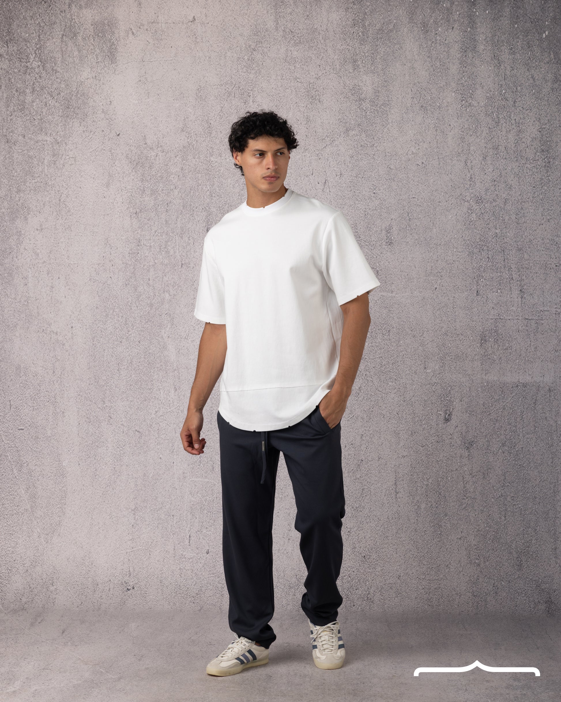 Transform your casual wardrobe with the Edge-Cut Oversized T-shirt in White, crafted exclusively for men. This oversized t-shirt features a distinctive edge-cut design that brings a modern, urban vibe to your look, combining effortless comfort with bold style.