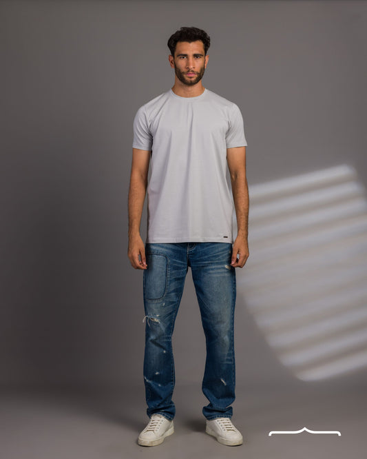Curved Back O-Neck T-shirt in Light Grey, Versatile wardrobe essential for both casual and smart-casual...