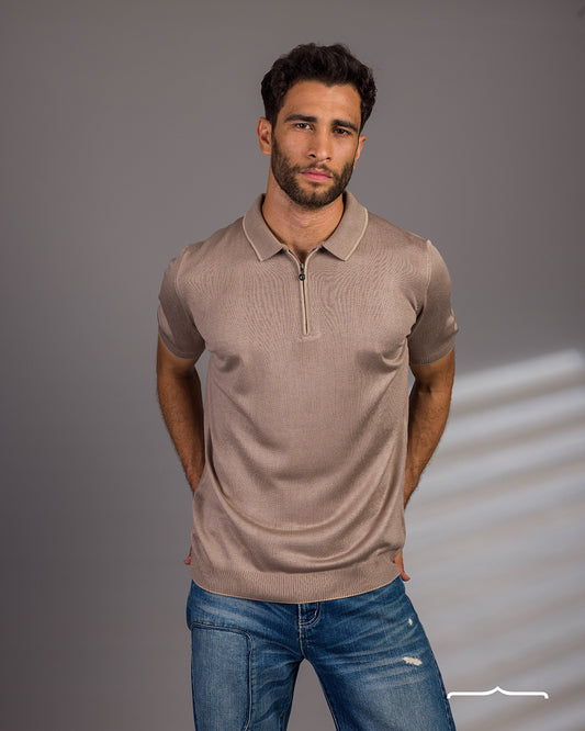Transform your everyday look with our luxurious Knitwear Zip-Up Polo in Beige. Designed from incredibly...