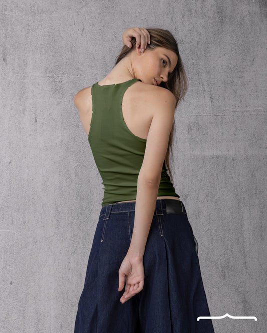 Rock a soft, olive, ripped halter neck top—ideal for a flirty, modern twist on classic femininity!...