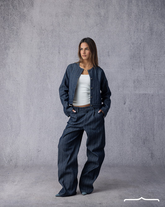 Description A bold Bermuda shorts and cropped jacket set designed to make a statement. Confident,...