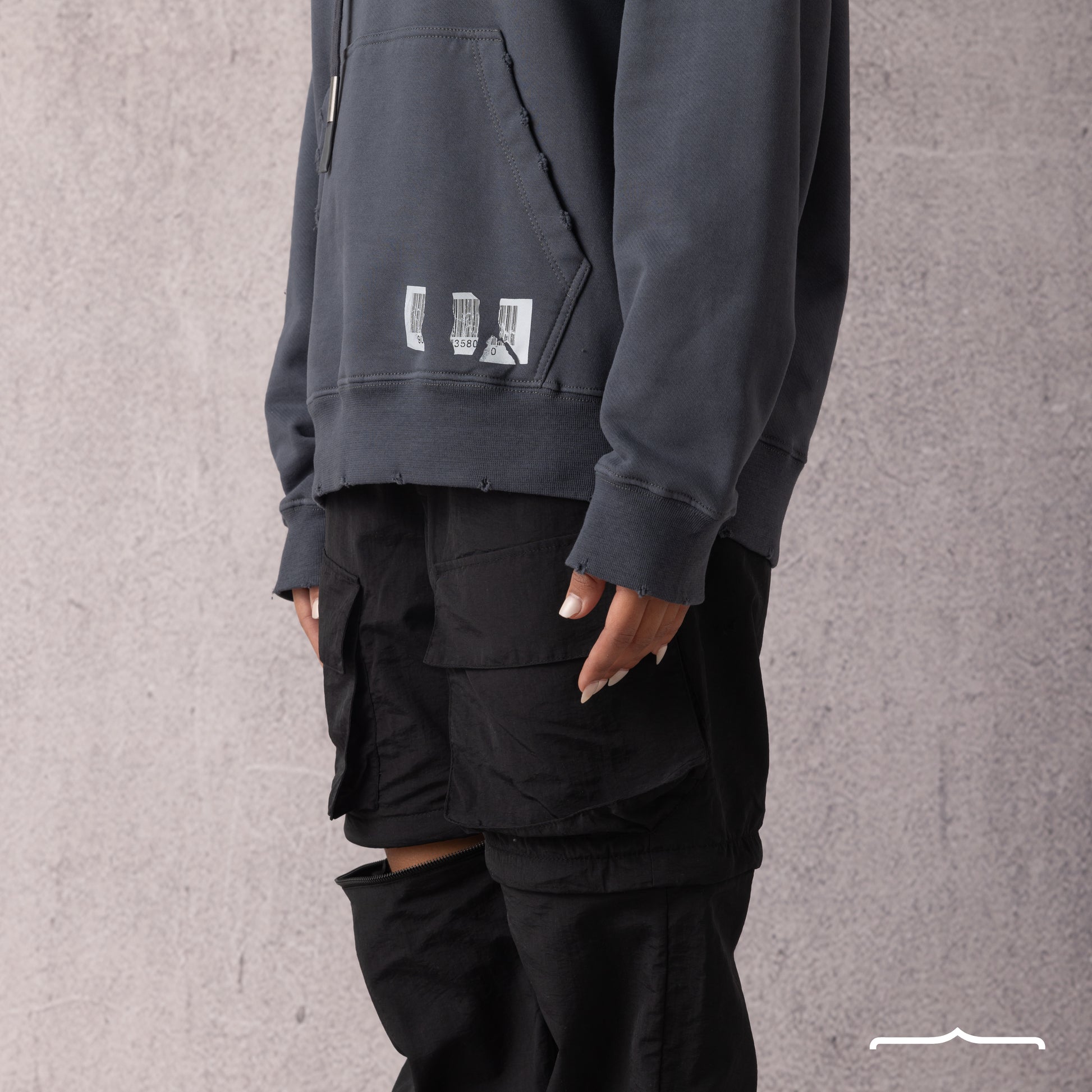 Barcode Washed Hoodie in Dark Grey
