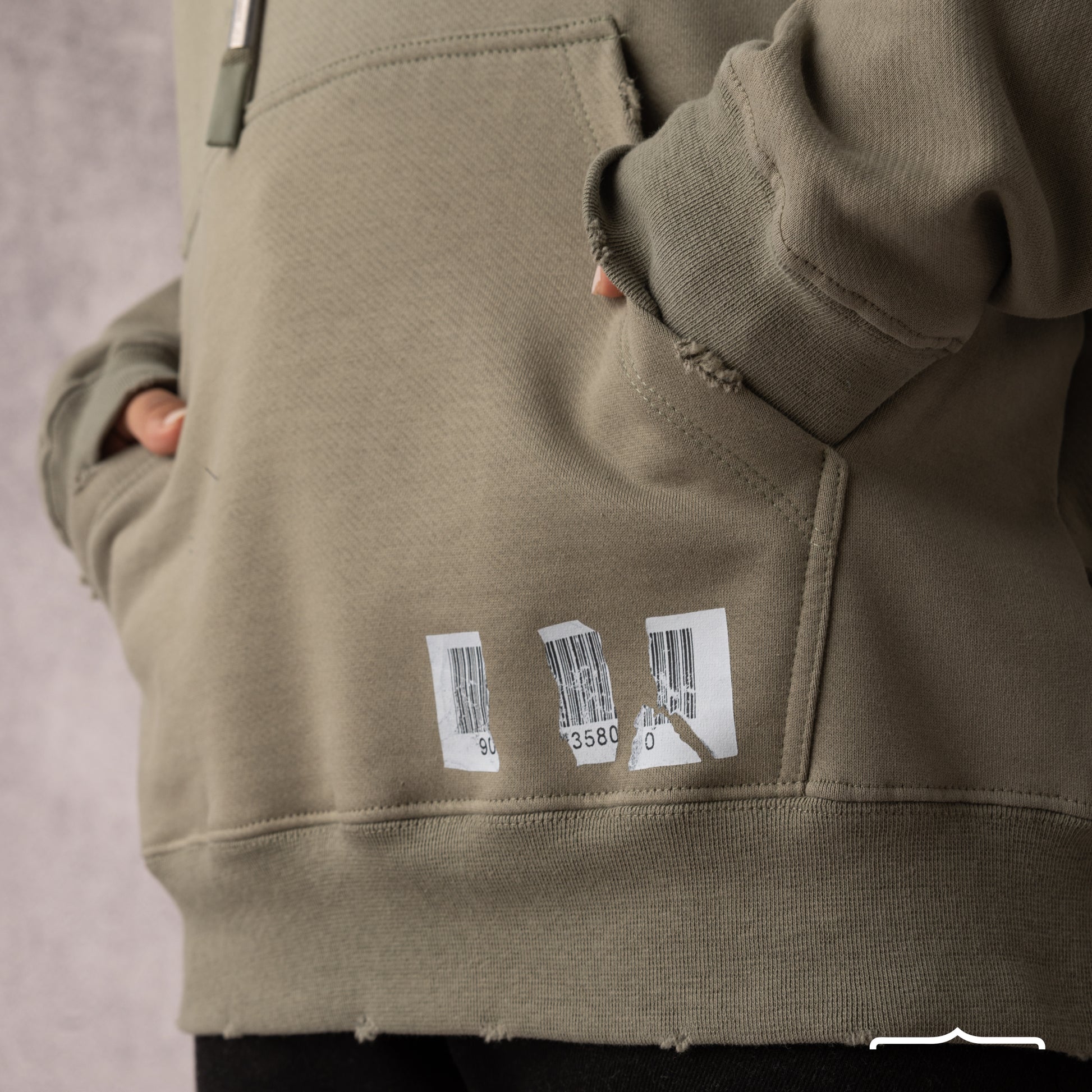 Embrace a modern, minimalist aesthetic with the Barcode Washed Hoodie in Olive. This hoodie's subtle olive hue is both stylish and easy to pair with other colors. The washed texture adds a touch of sophistication, and the cozy fleece lining will keep you warm on cooler days. It's the ideal choice for a casual yet polished look.