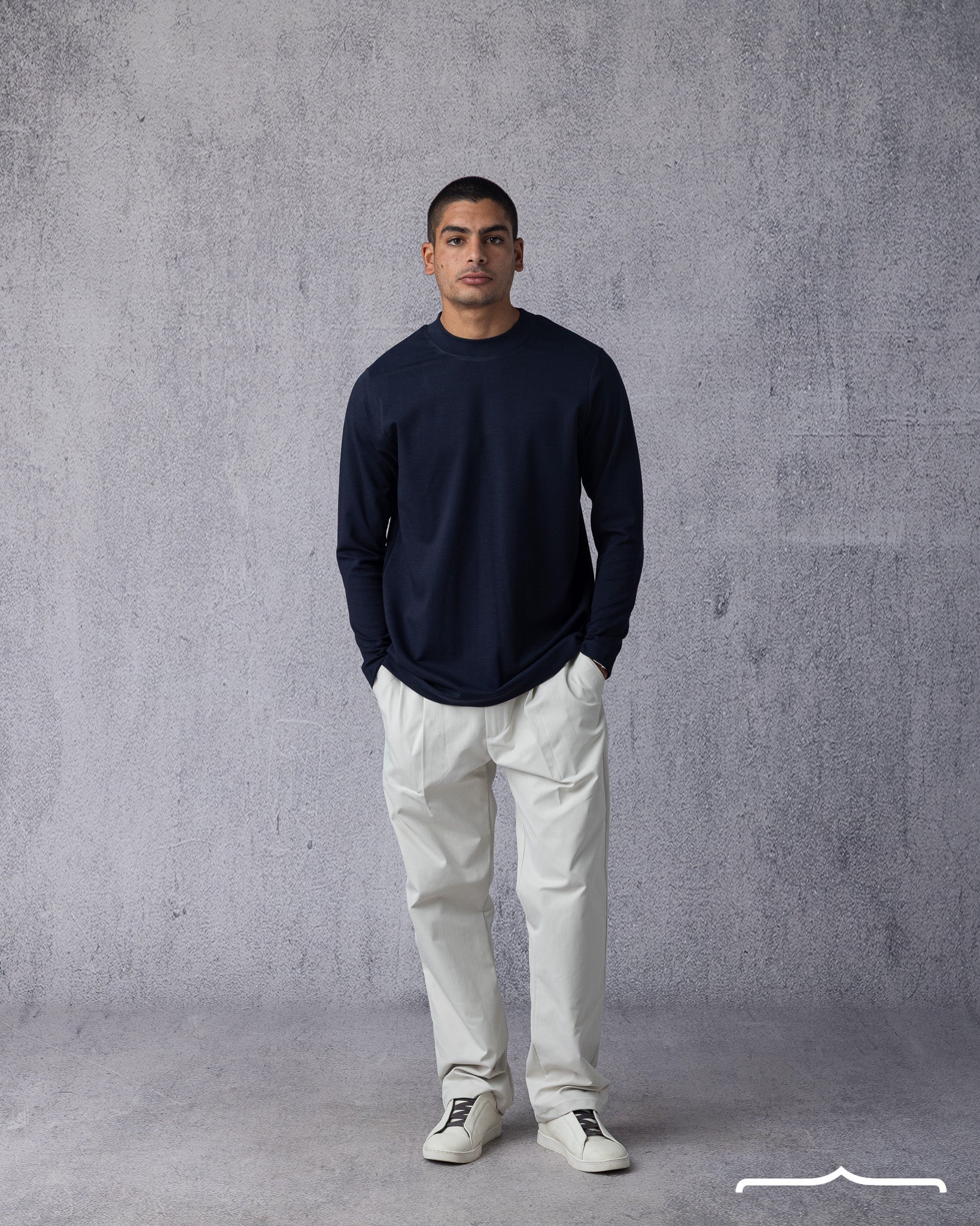 Regular fit 47% cotton, 47% viscose and 6% Lycra. Half neck Fine-knit fabric.