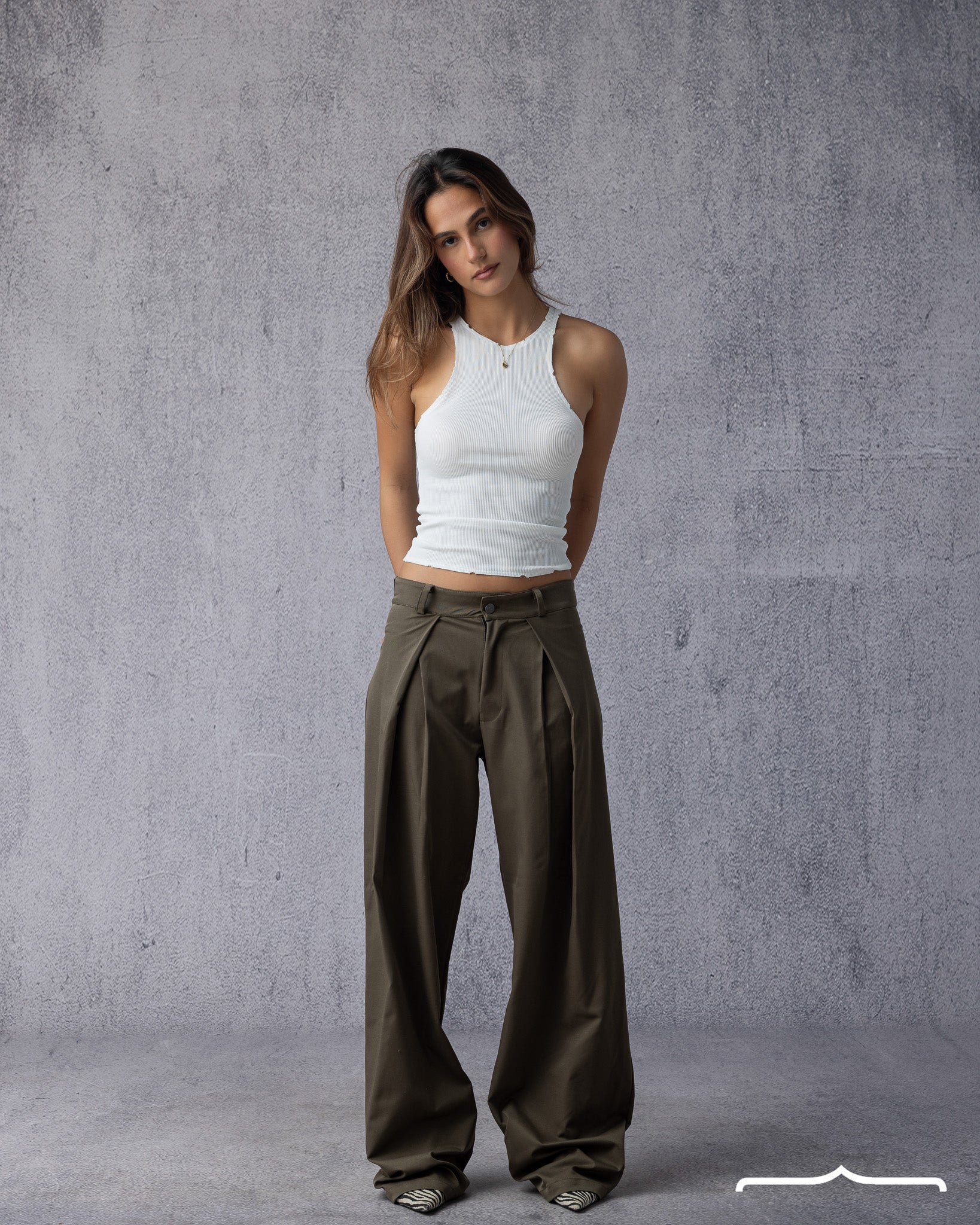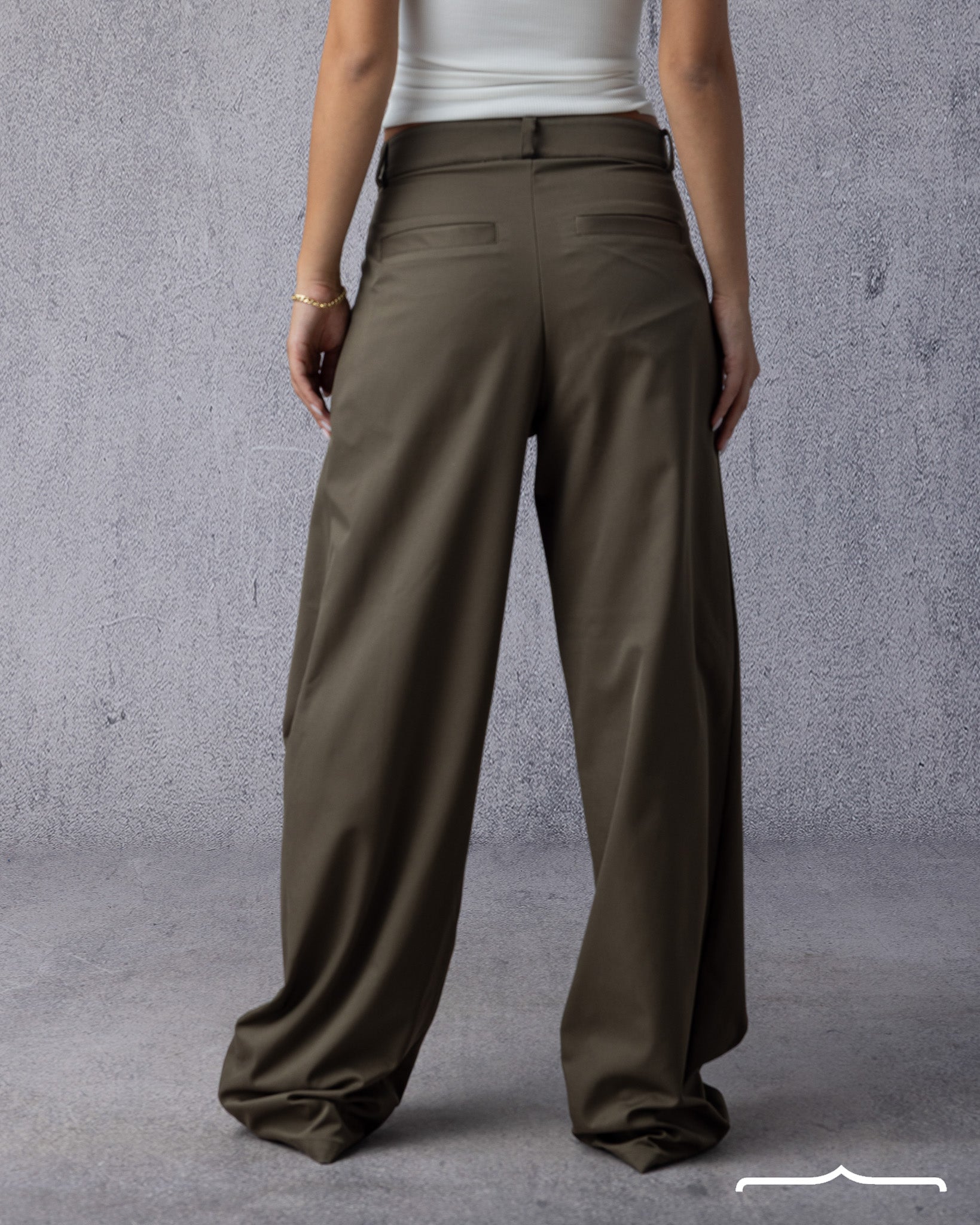Mid-waist trousers with double front pleats and a relaxed, baggy silhouette. Effortlessly cool with a soft, structured fall.
