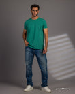 Green Split T-shirt. Lightweight and ideal for layering or wearing alone.