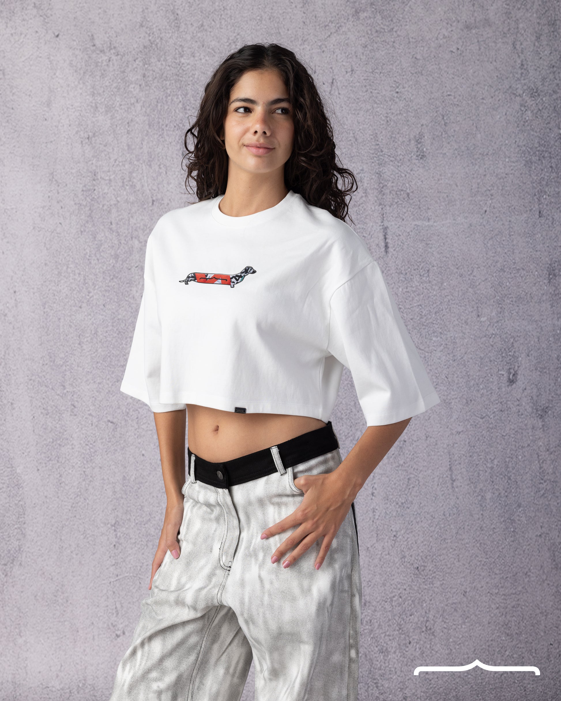 Sausage Dog Oversize Crop T-shirt in White