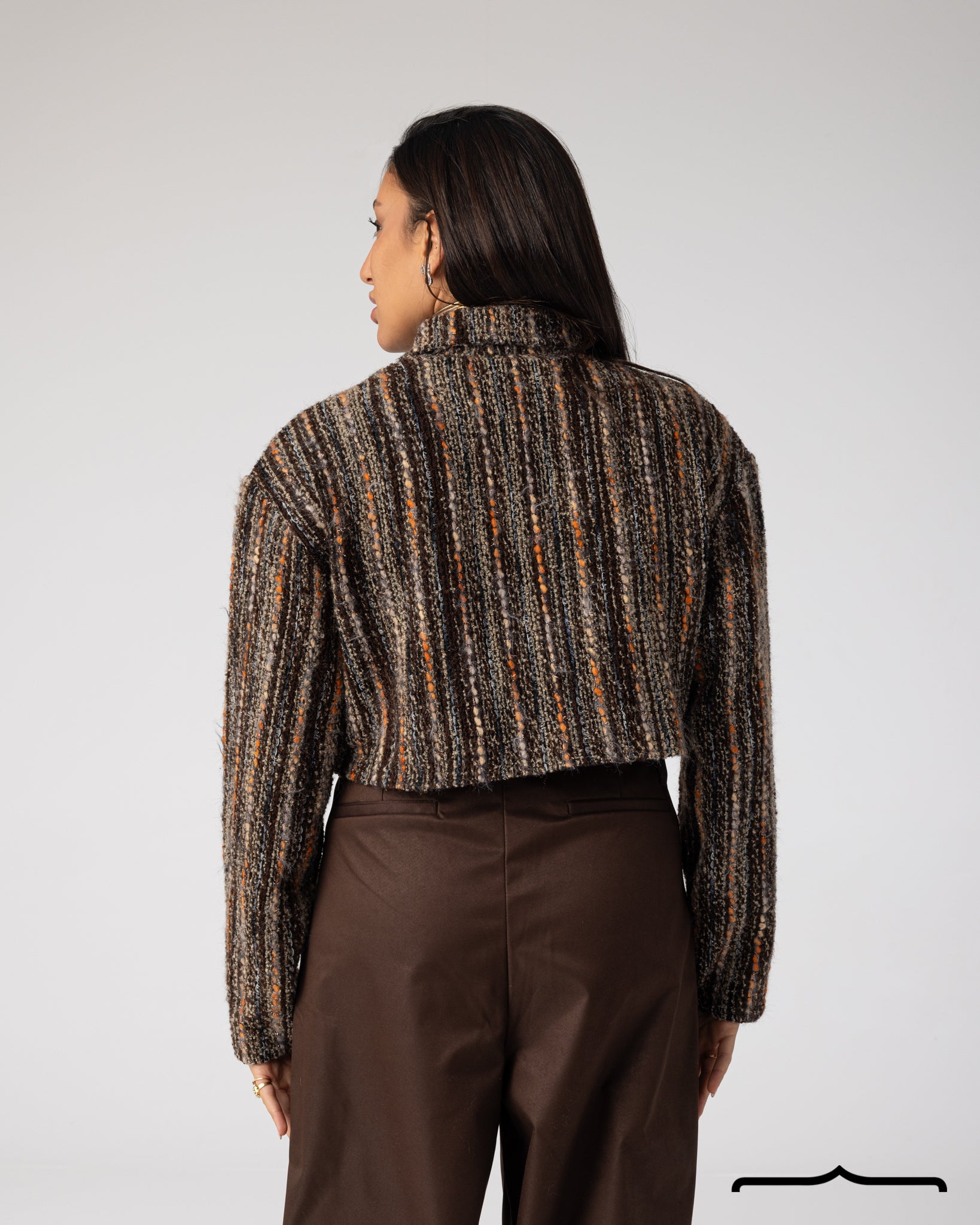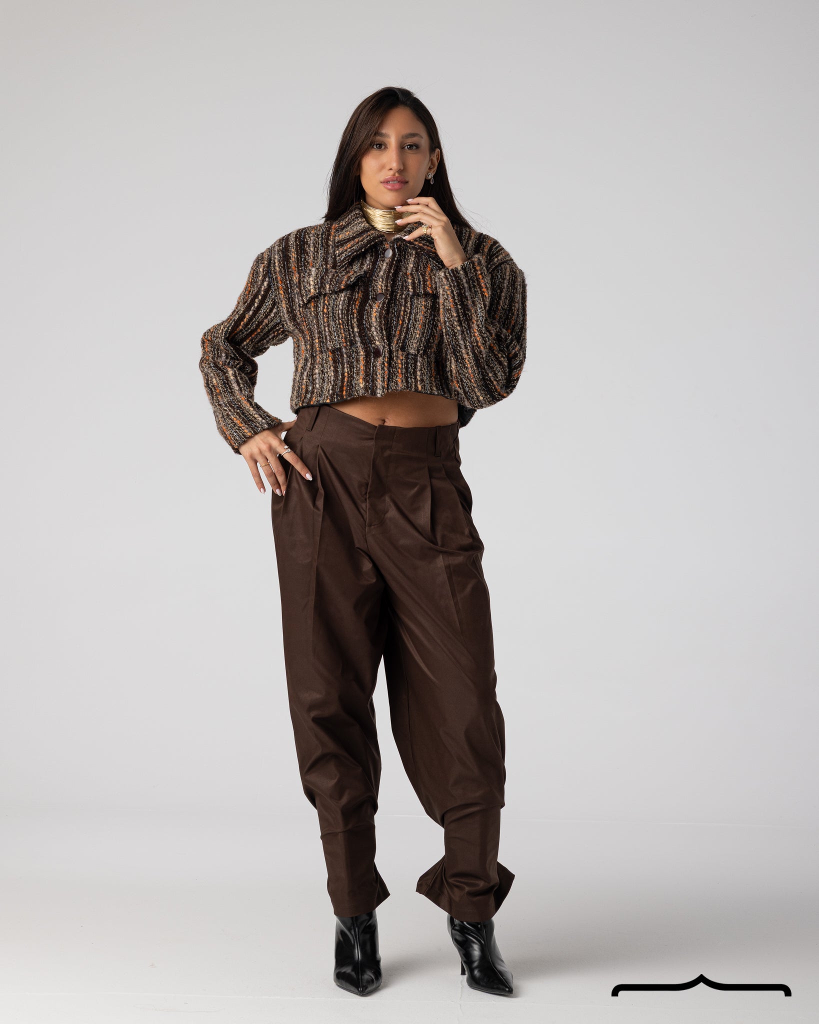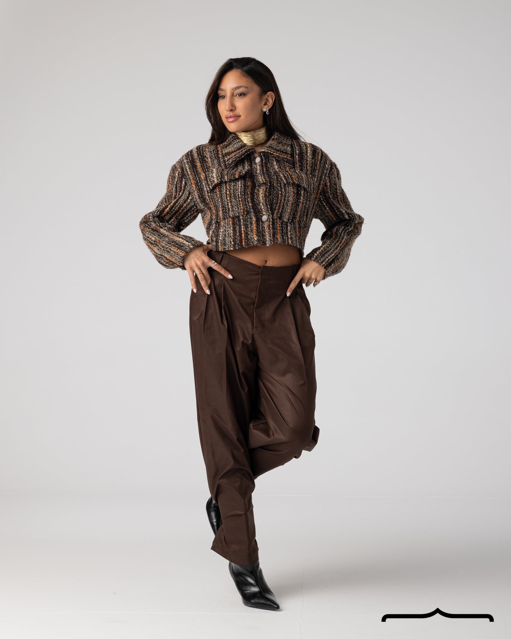 A statement funnel-neck leather jacket that blends clean structure with attitude — quietly bold and endlessly versatile.