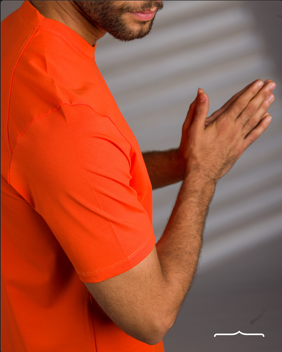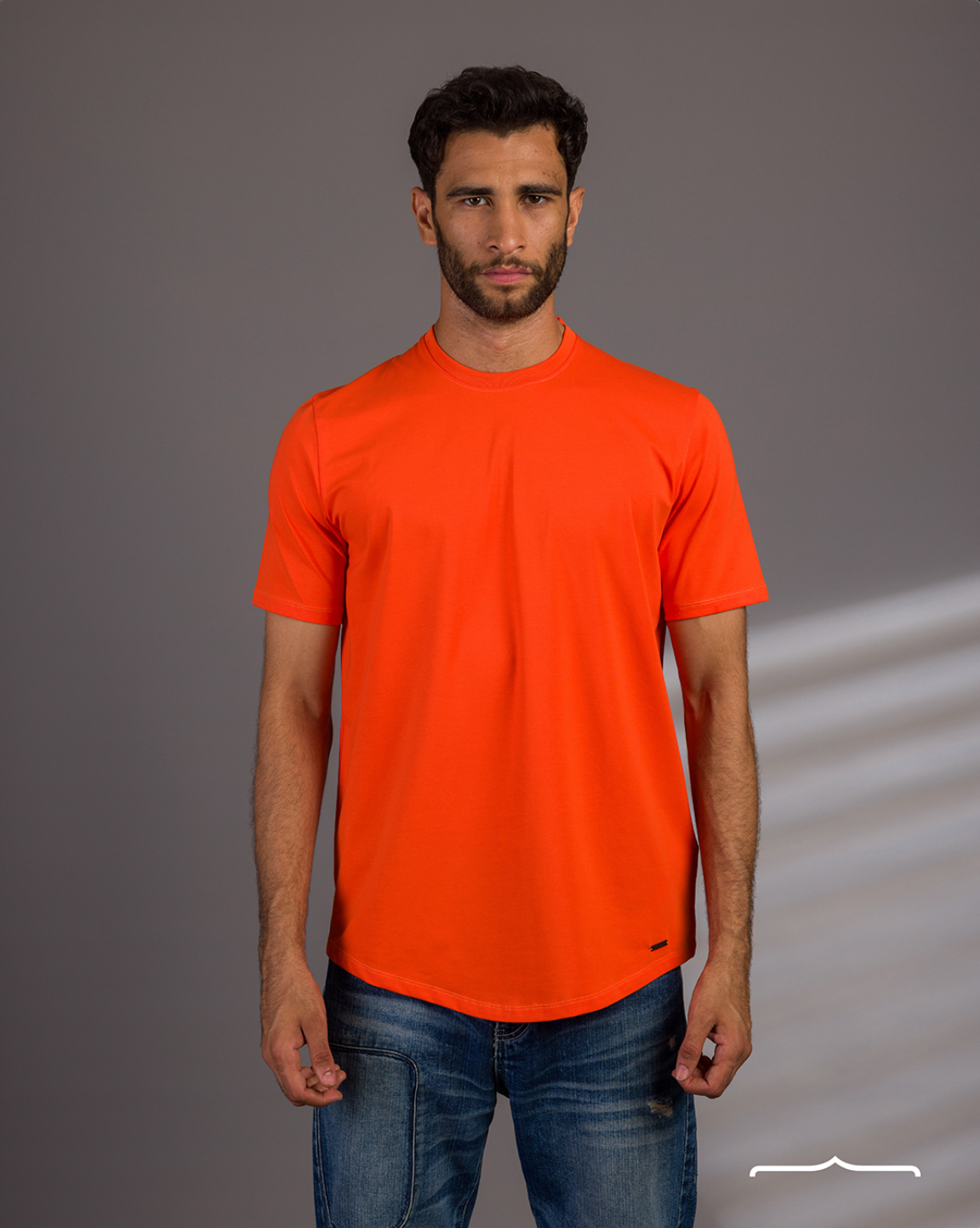 Curved Hem Volume 2 T-shirt in Orange for men offers a stylish, trendy look for casual wear enthusiasts. Enjoy premium materials and an eye-catching design.