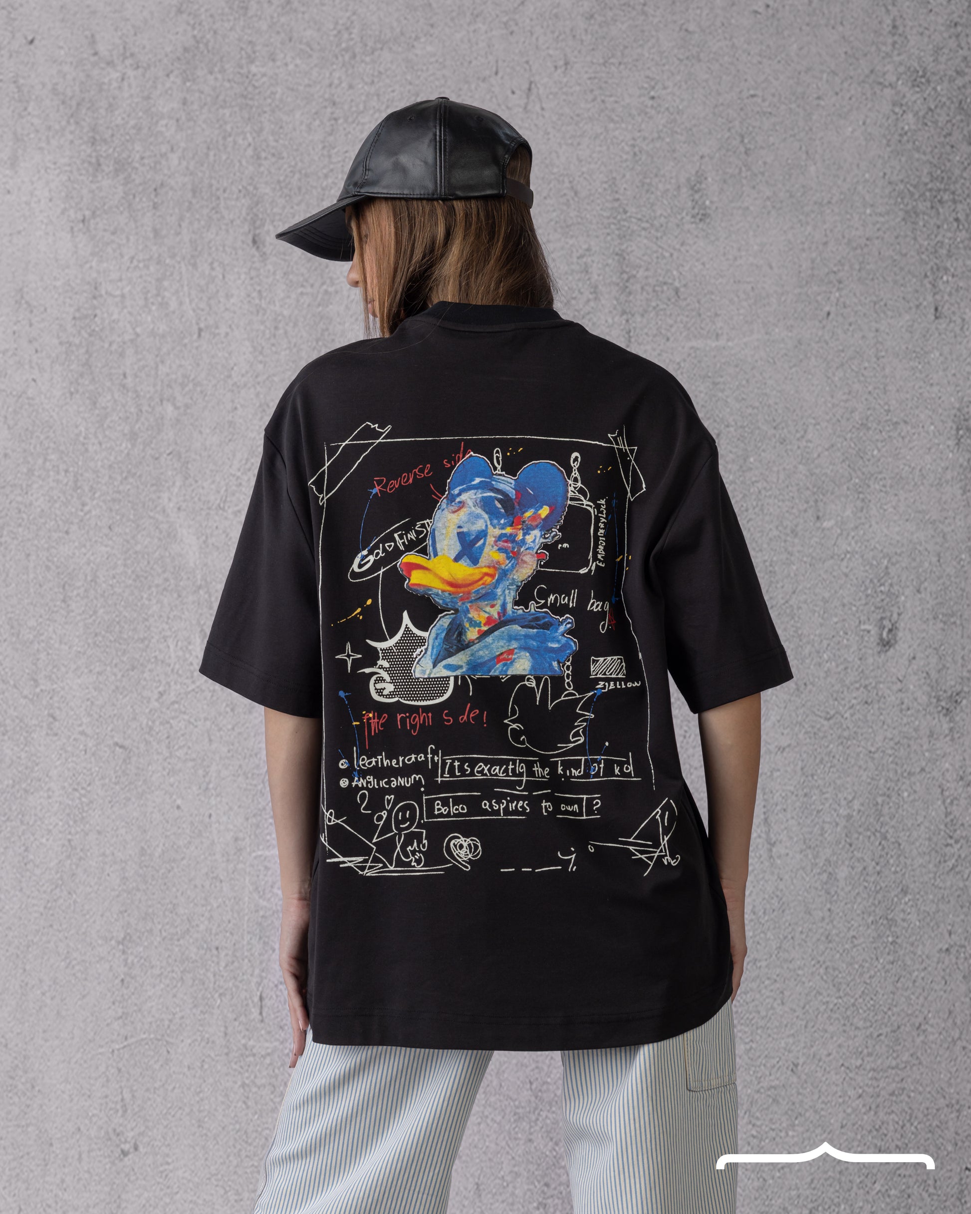 Bring a playful edge to your casual wardrobe with our Donald Duck Sketch Oversized T-shirt in sleek black. Designed with a relaxed oversized fit, this tee combines everyday comfort with a fun, minimal sketch of the iconic Donald Duck — perfect for effortlessly cool, laid-back looks.