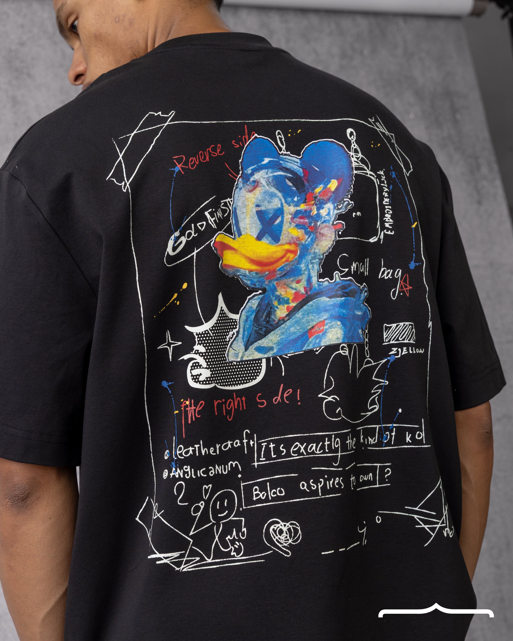 Step up your casual style game with the Donald Duck Oversized T-Shirt, designed exclusively for men. This regular-fit t-shirt features a unique rubber-detailed icon that adds an extra touch of sophistication to your look, blending comfort and style effortlessly.