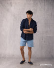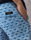 Premium lightweight swim shorts with a smooth finish, made from waterproof fabric and elastane for extra comfort, featuring a shark print.