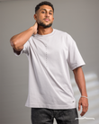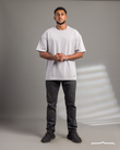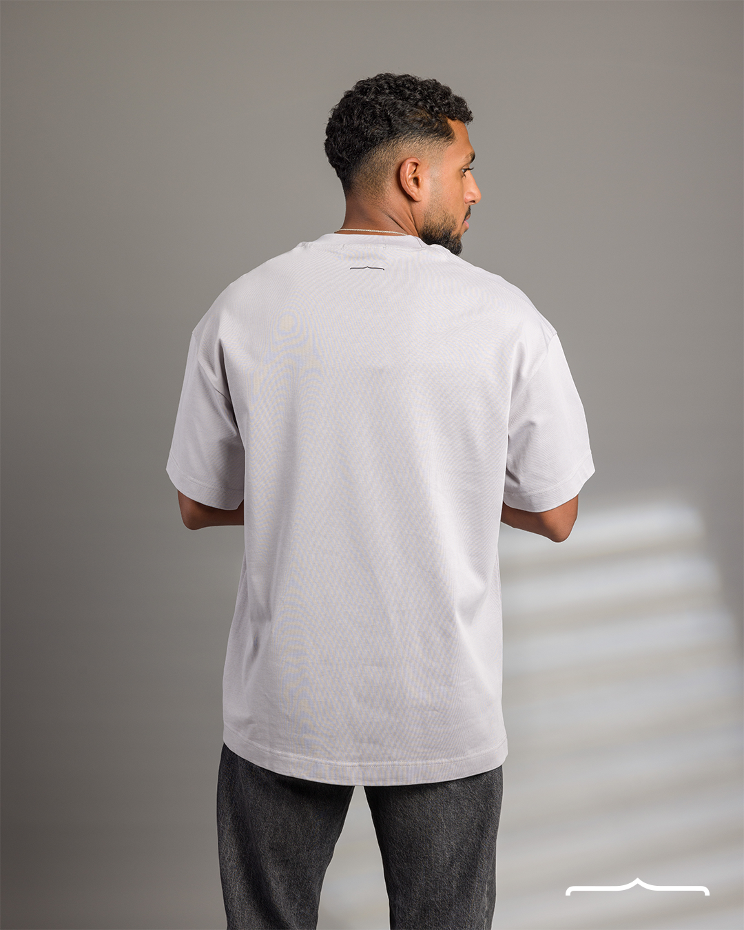 An oversized, round-neck t-shirt with a simple design and "free spirited" written vertically on the front.