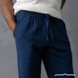 linen navy blue pants made to be of a comfortable fit with adjustable strings.