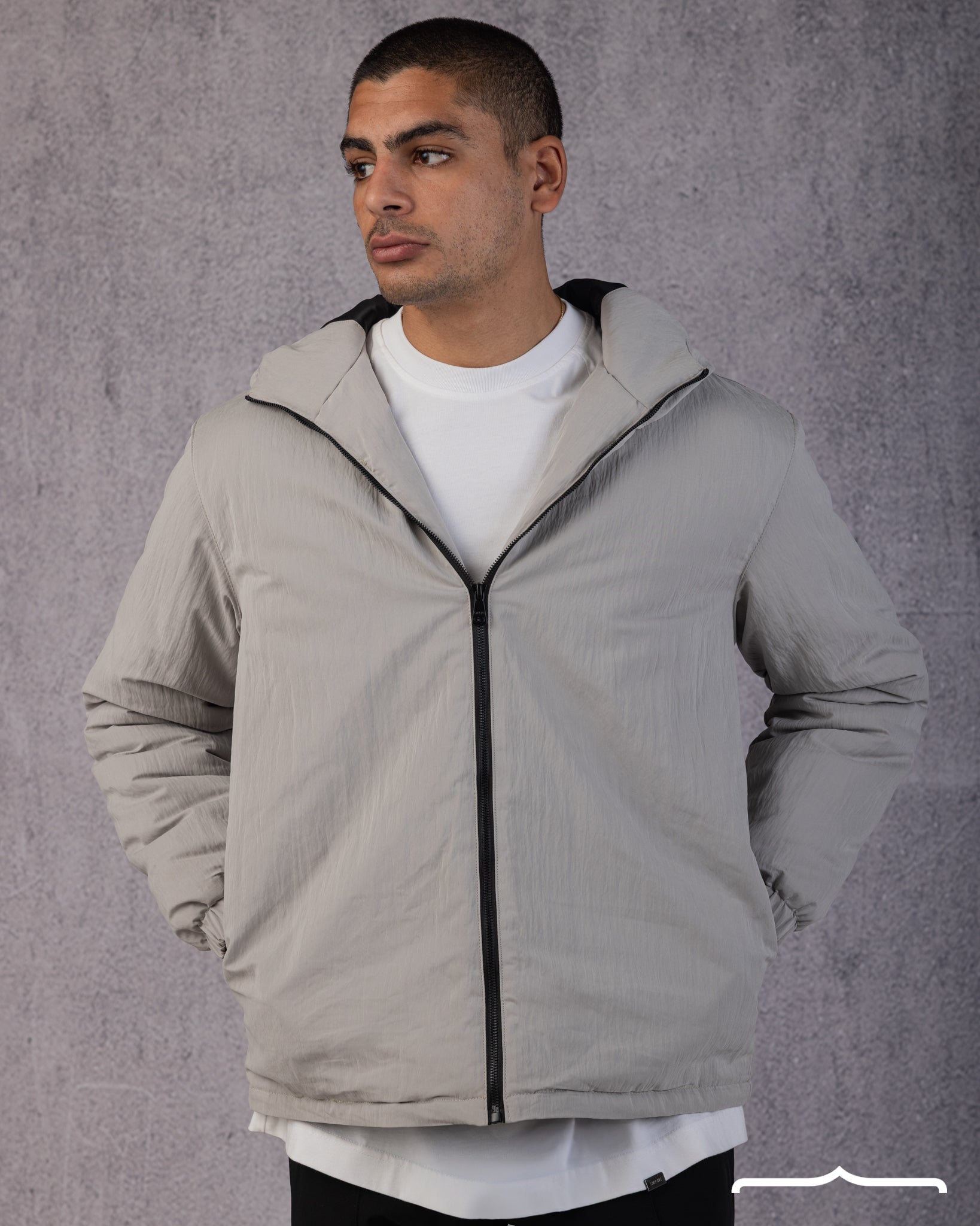 Hooded Puffer Waterproof Jacket in Light grey