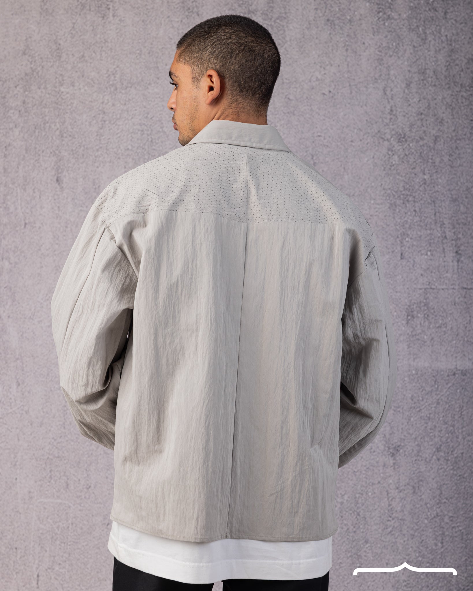 Structured Utility Oversize Waterproof Shirt in Light Grey