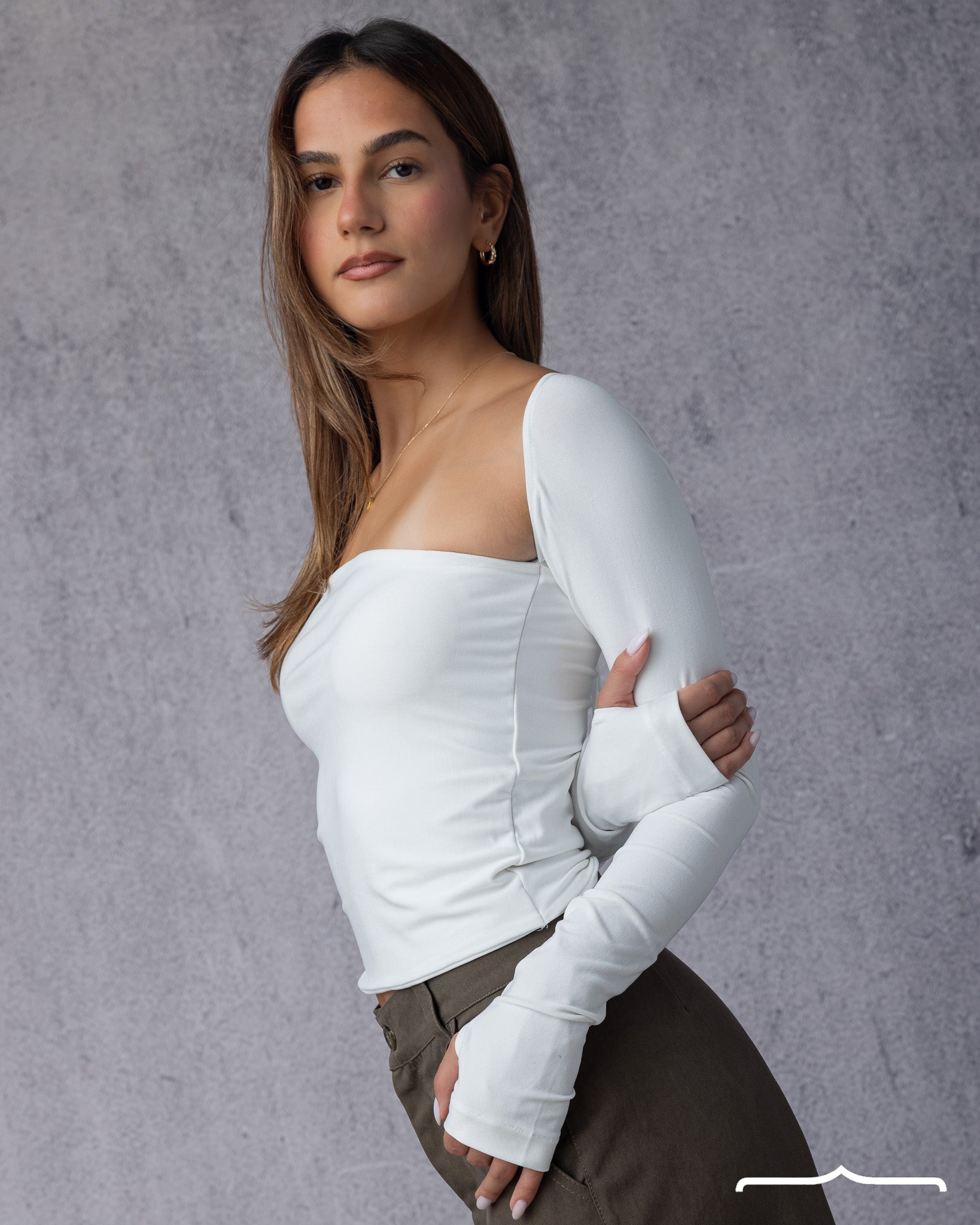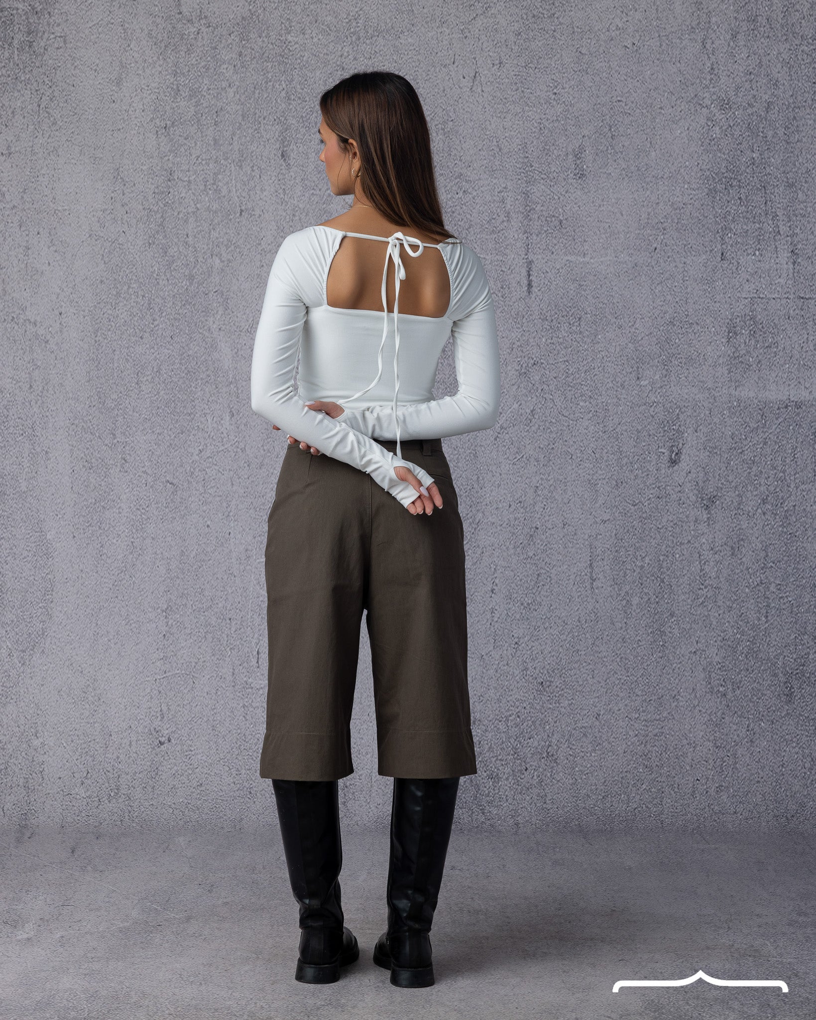 A sleek, seamless blouse featuring an open back design. Minimal yet striking, crafted for an effortlessly elegant look.
