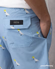 Smooth finish, premium lightweight, waterproof fabric swim shorts with elastane for extra comfort, featuring a parrot print.