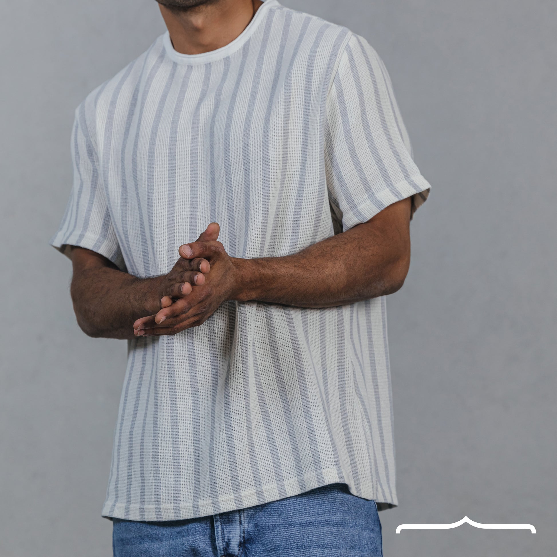 The Stache Oversized shirt Raw Edge Collar in White X Grey- An Elevated Accent for Effortless Style.