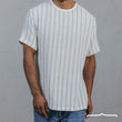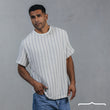 Striped Oversize shirt Raw edge Coller in White X Grey
