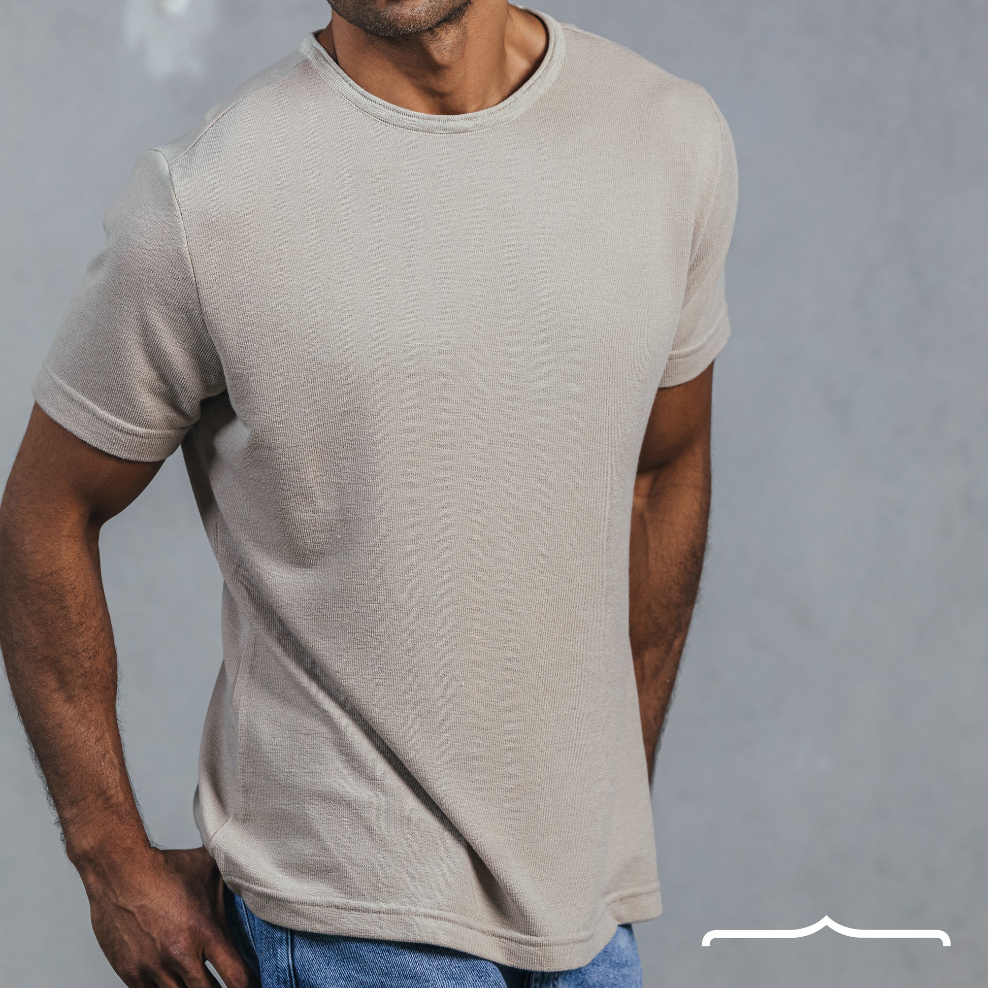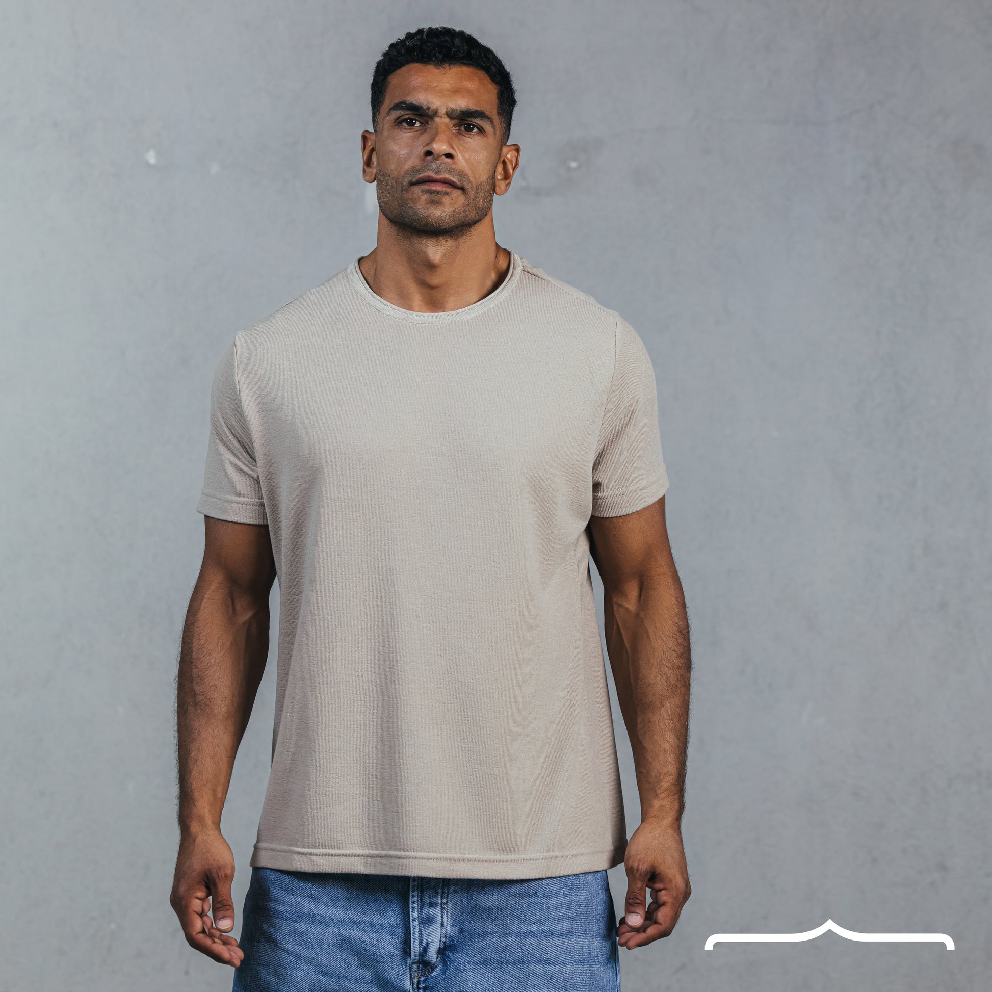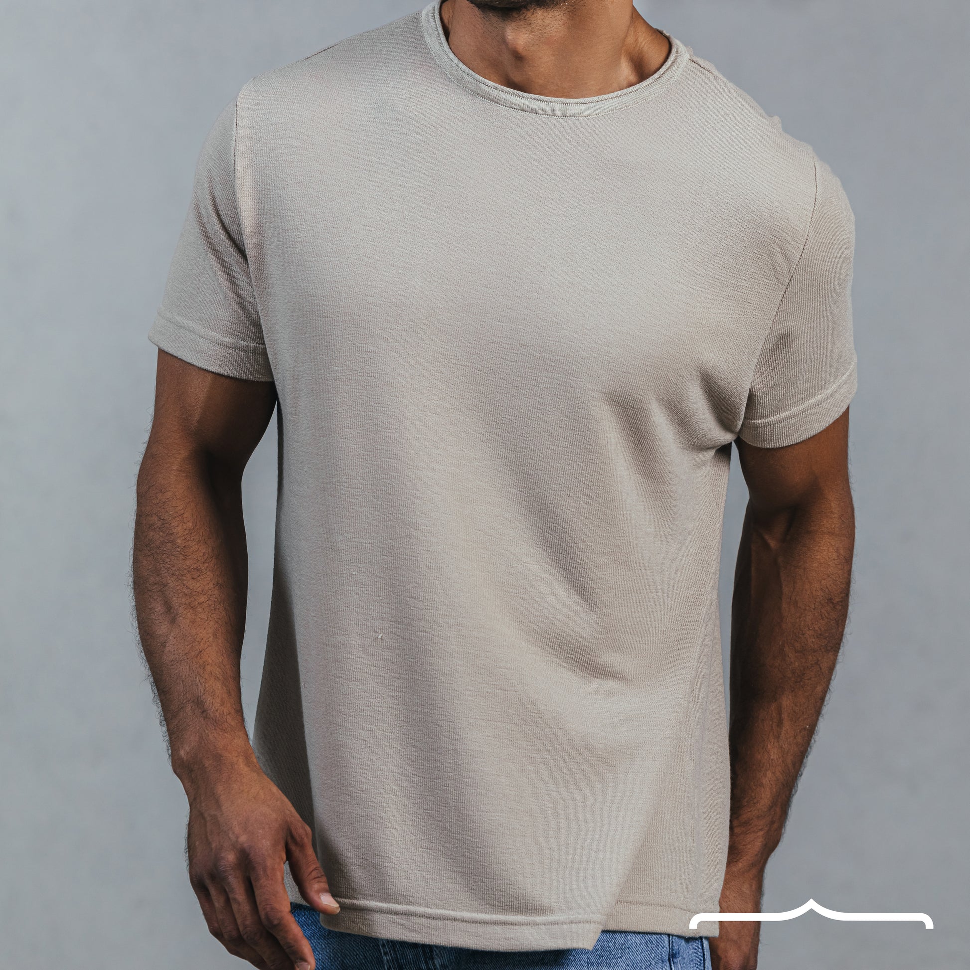 Raw edge Coller Custom Fit knitwear T-shirt in Beige
