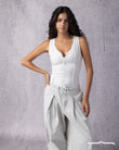 This White top is an essential piece that combines sophistication with a tailored fit. Made from ultra-soft fabric, it provides comfort while maintaining an elegant appearance, suitable for both day and night.