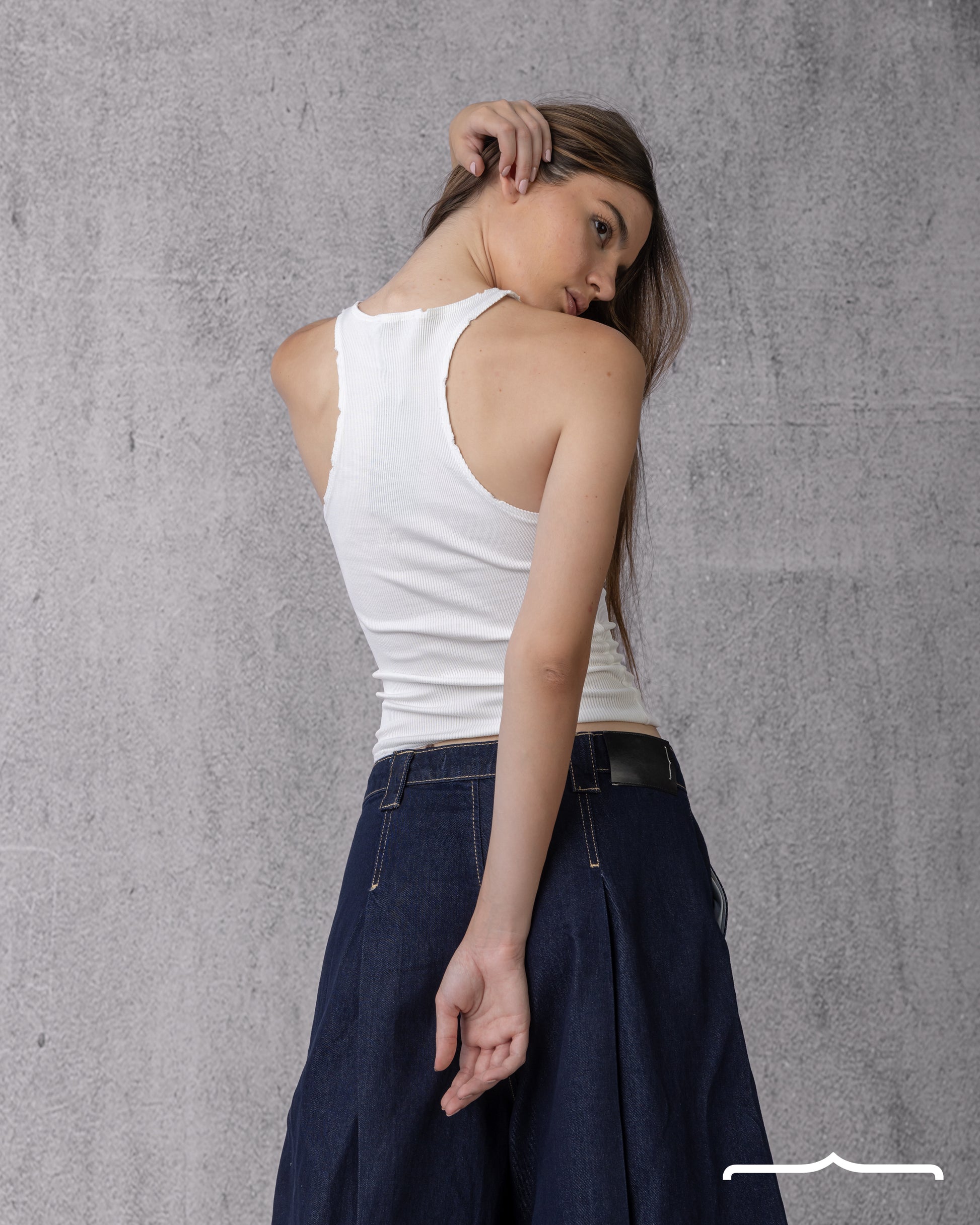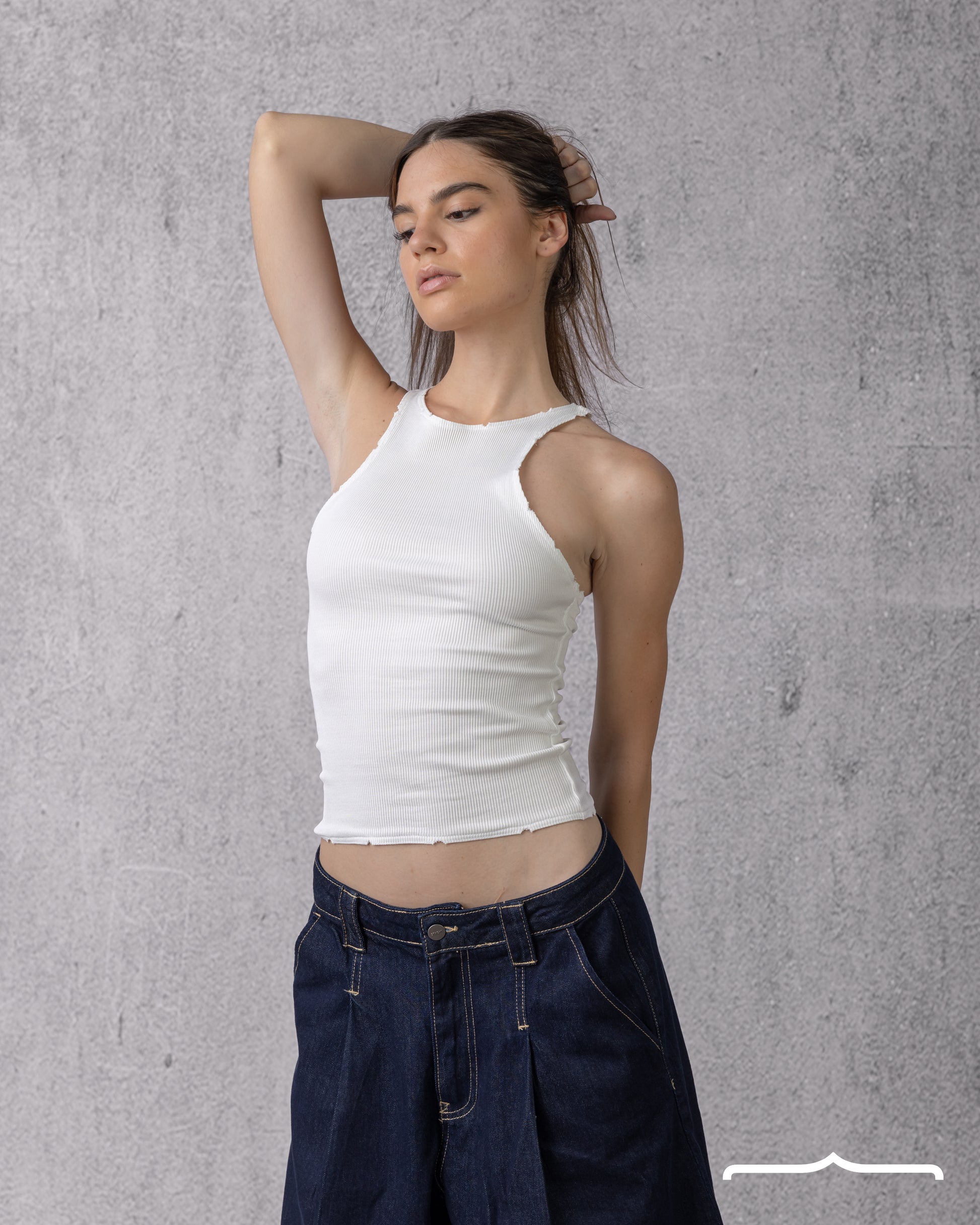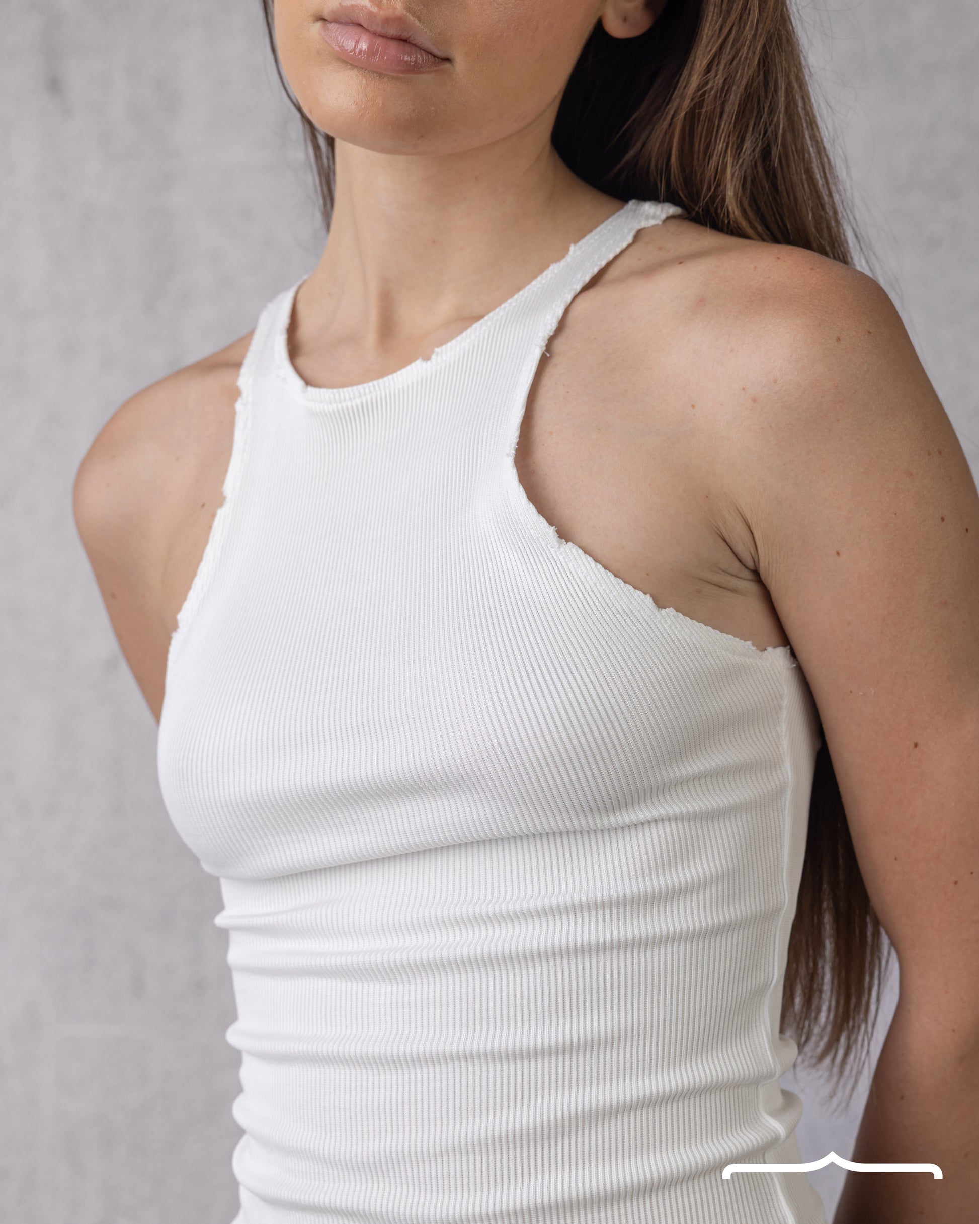 Rock a soft, white, ripped halter neck top—ideal for a flirty, modern twist on classic femininity!