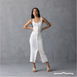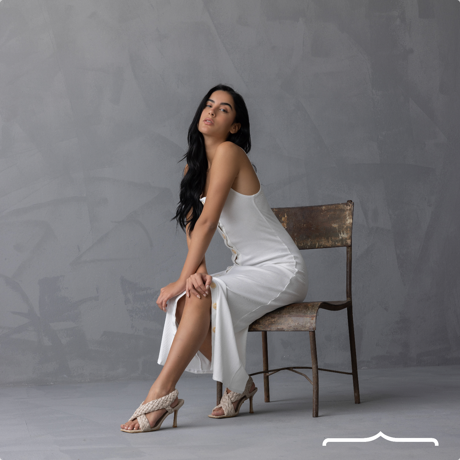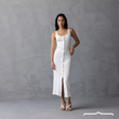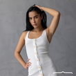 A stretchy ribbed dress in white features charming front buttons. Unbuttoning them adds a playful touch of sass to your look, allowing you to customize your style effortlessly