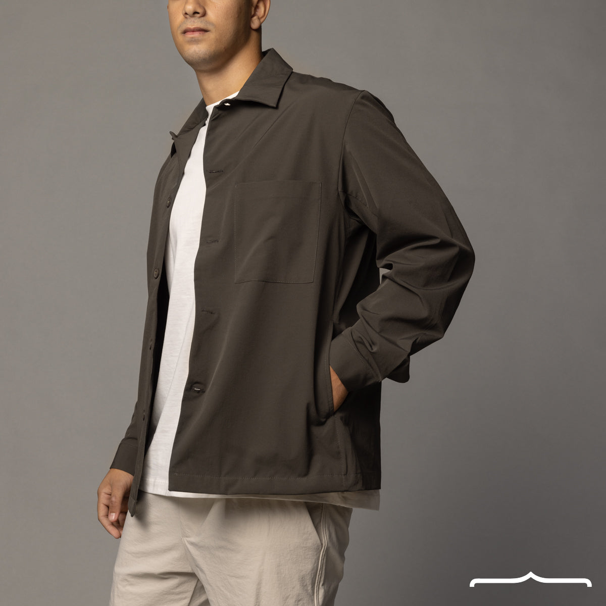 Our lightweight waterproof shirt, designed to keep you comfortable in chilly weather. It has a unique blend of shirt and jacket vibes, perfect for layering or wearing alone.