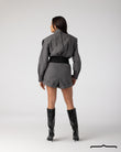 Grey, sleek, and powerfully chic. Defined shoulders, fitted waist, and a flawless silhouette made for standout looks.