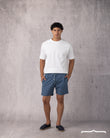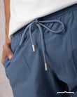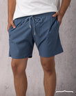 Smooth finish, premium lightweight, waterproof fabric, blue swim shorts with elastin for extra comfort