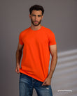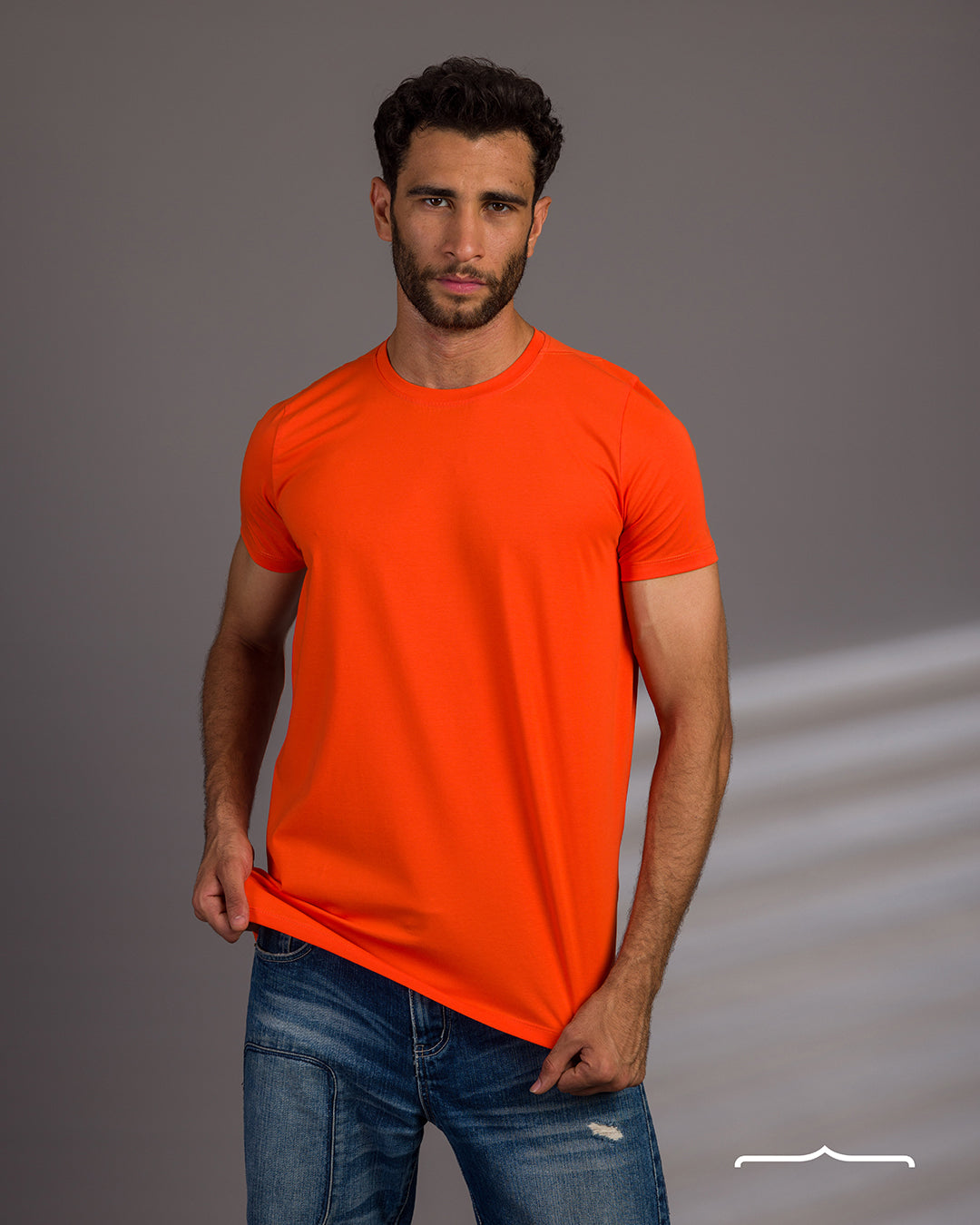 This orange split T-shirt is a versatile wardrobe essential suitable for both casual and smart-casual occasions.