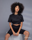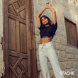 A sporty yet stylish staple, this bkack crop top t-shirt is detailed with a bold STACHE logo band at the hem. Designed with a relaxed fit and soft fabric, it’s the perfect mix of comfort and edge—ideal for pairing with high-waisted pants or leggings.