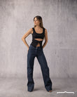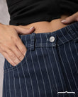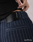 This essential striped denim offers a sleek, form-fitting design with a stretchy fabric that hugs your curves. A timeless piece that pairs well with anything, making it a go-to for effortless style.