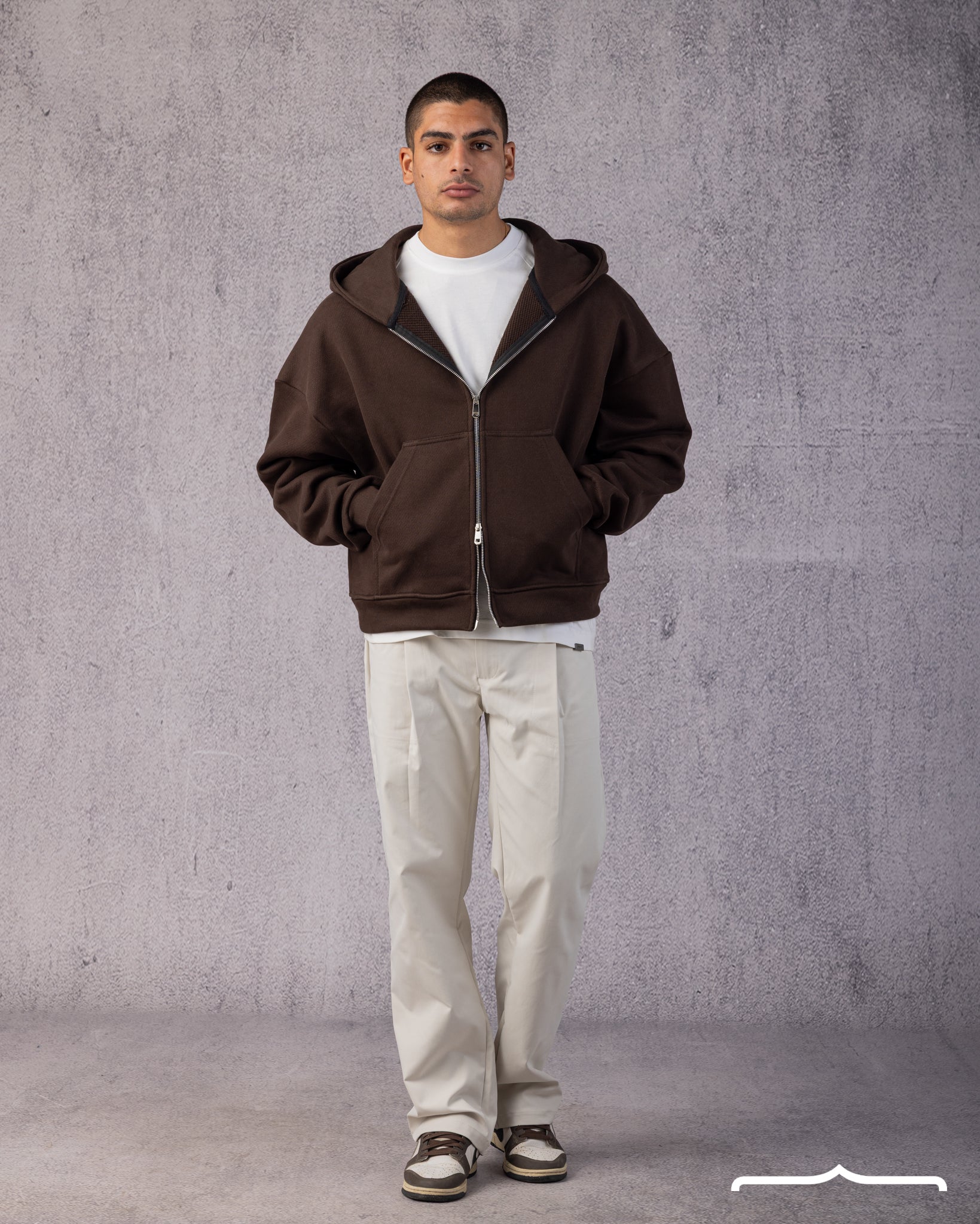 A modern hoodie featuring a double-ended zipper that opens from both the top and bottom, allowing flexible styling and ease of movement. Clean, minimal, and built for everyday wear.