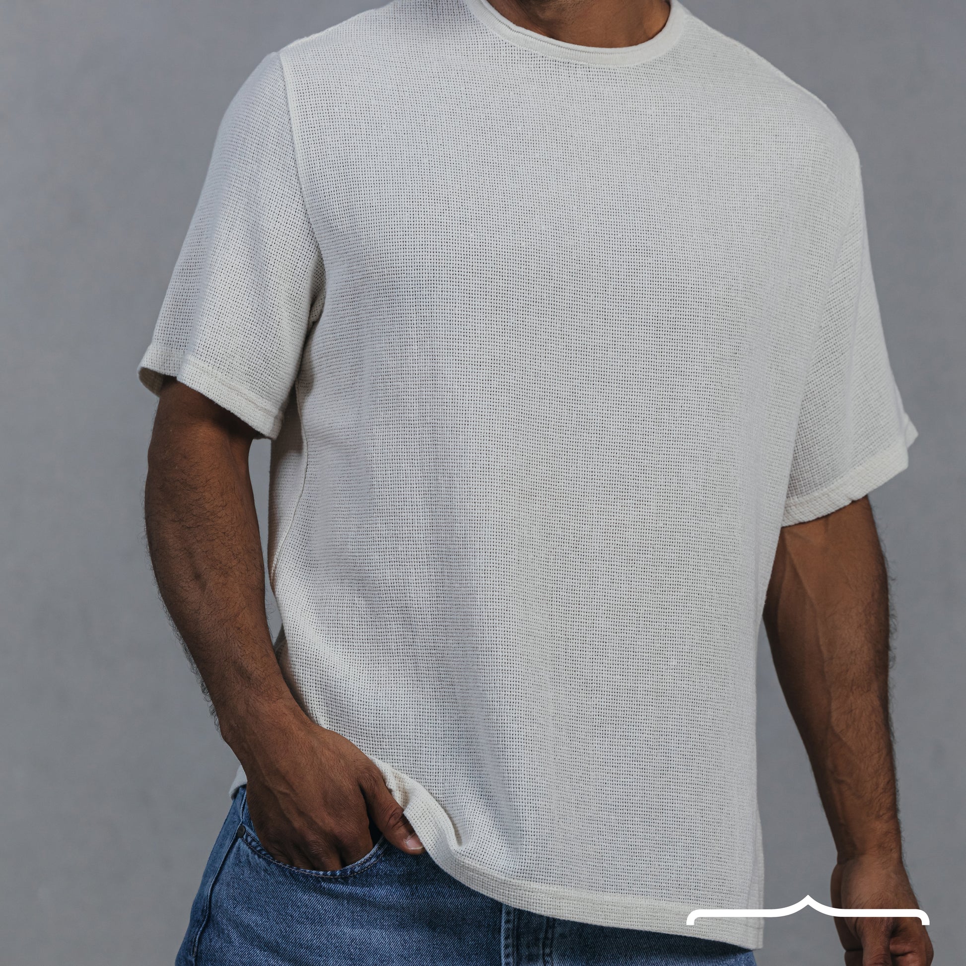 Textured Oversize T-Shirt Raw Edge Coller Beige