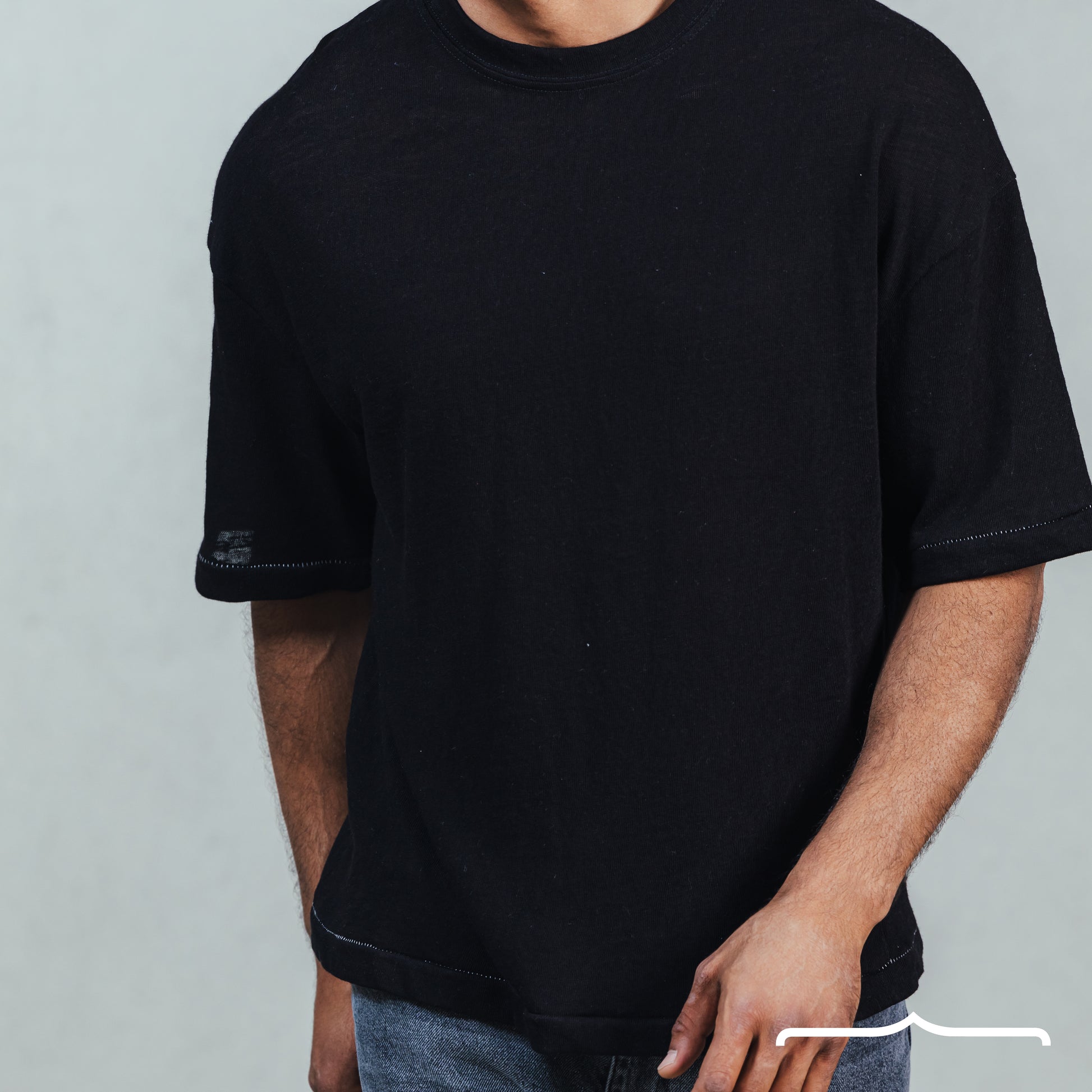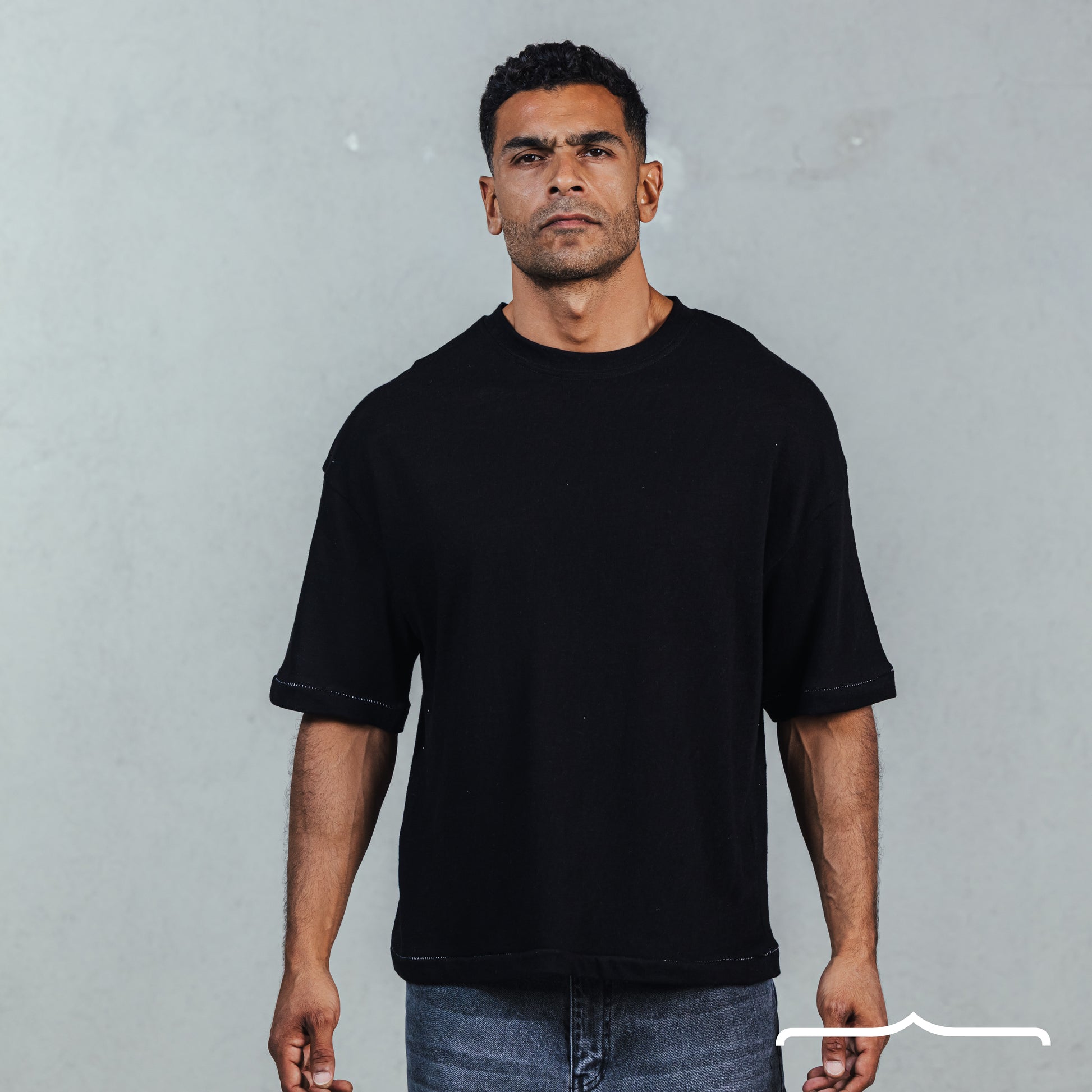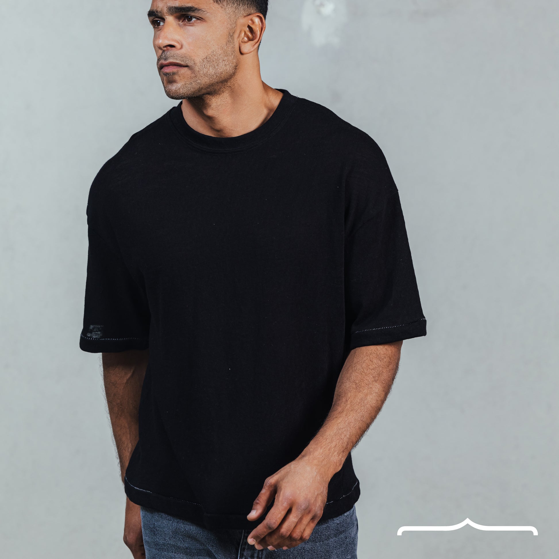 Boxy Fit Oversized Knitwear T-Shirt in Black