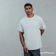 Textured Oversize T-shirt Raw Edge Coller Light Grey
