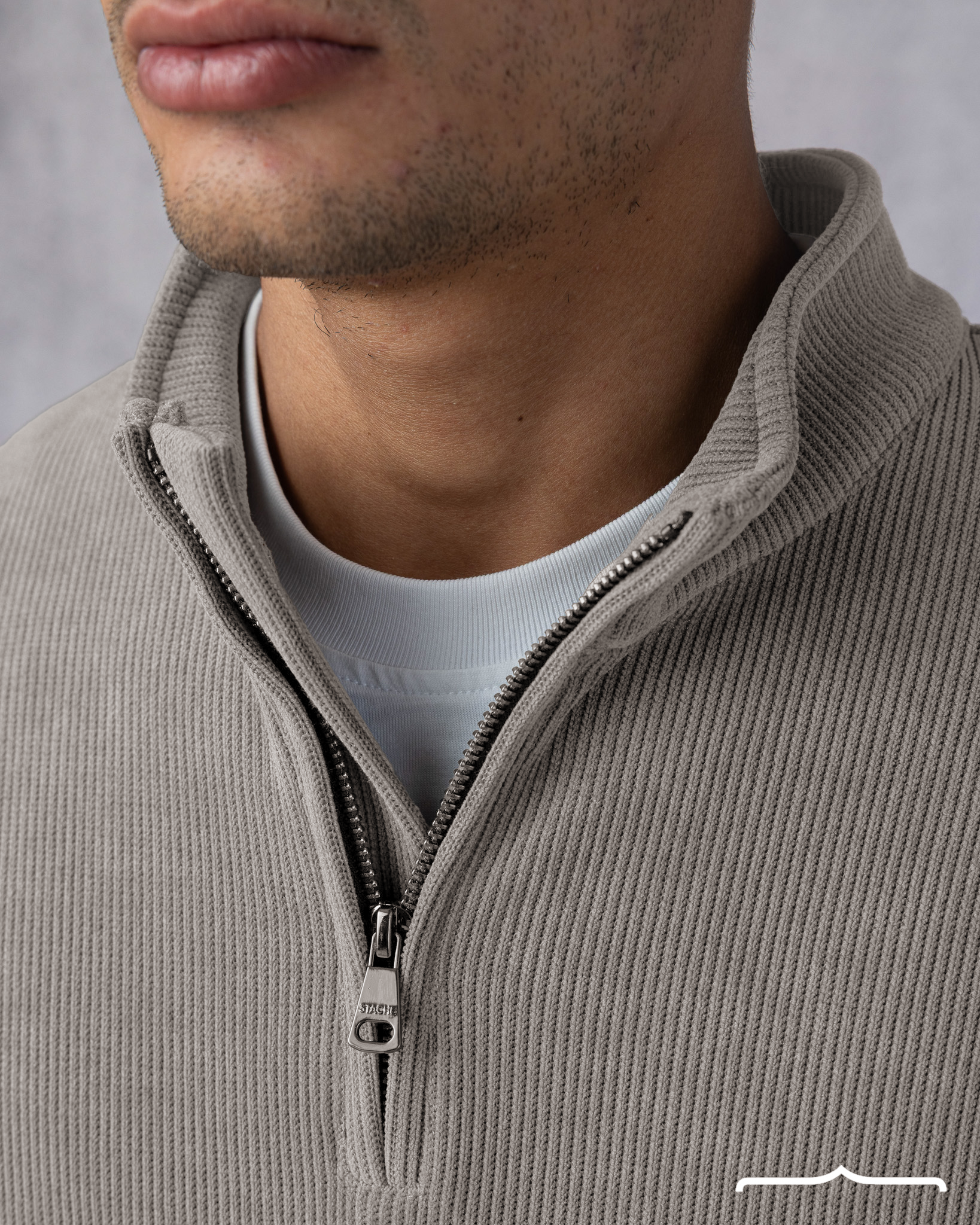 Textured Half Zipper Sweatshirt in Beige