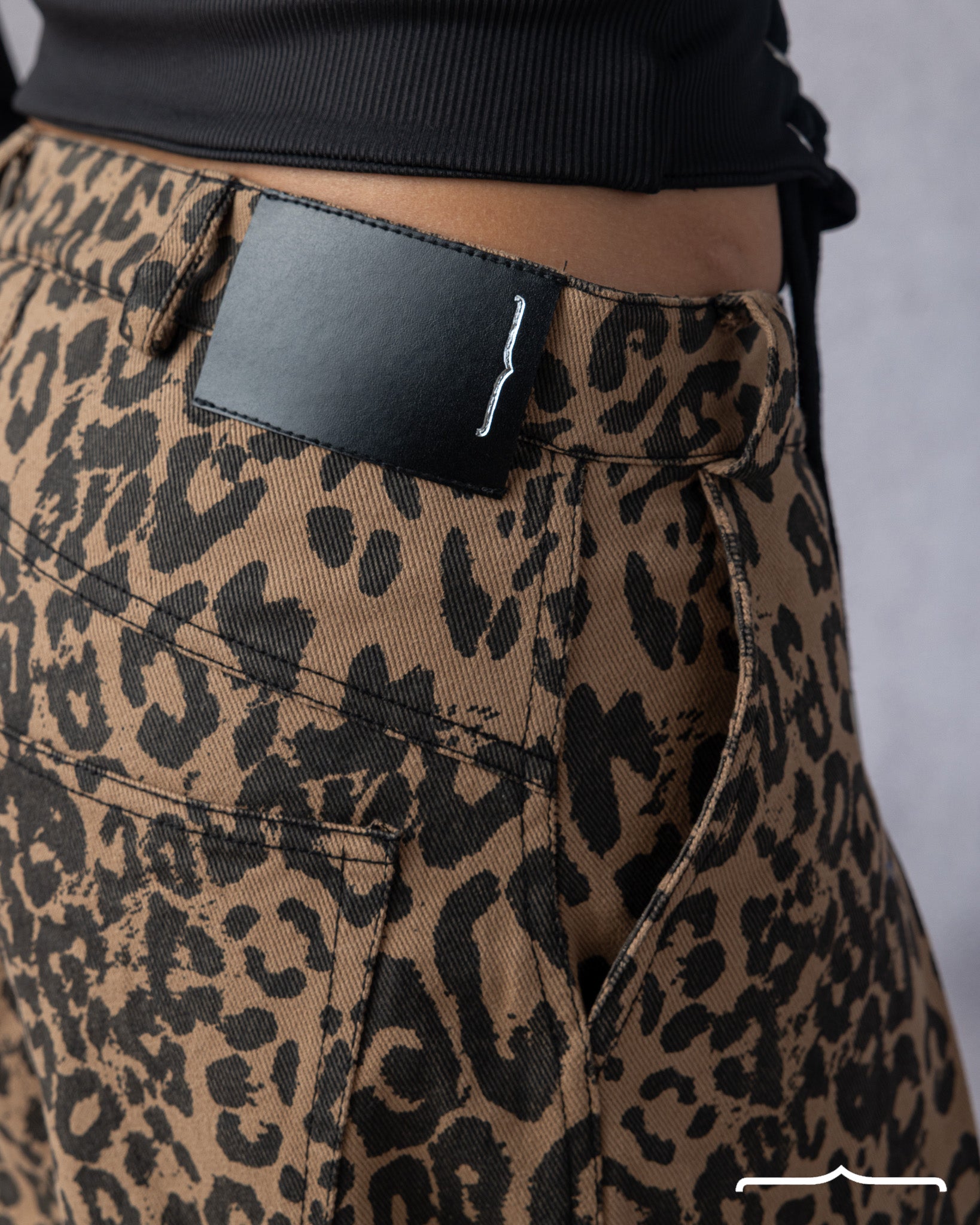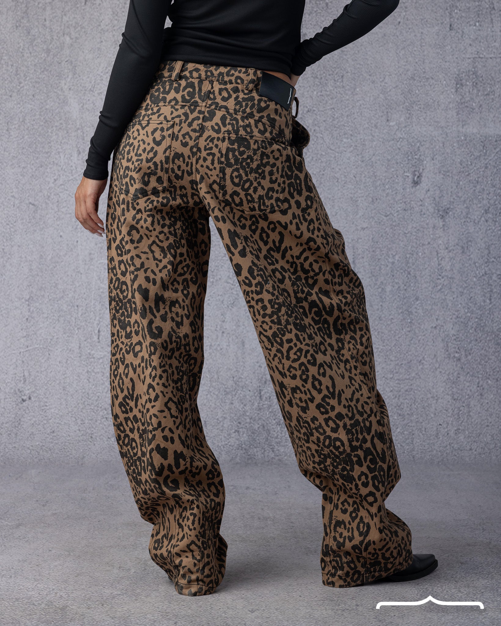 Baggy cheetah-print denim with a bold statement fit and a touch of wild flair.
