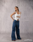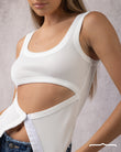 This fabulous tank top showcases a trendy front cut-out, stylish hook-and-eye detail, and an eye-catching asymmetric hem. The ribbed design guarantees you'll shine!