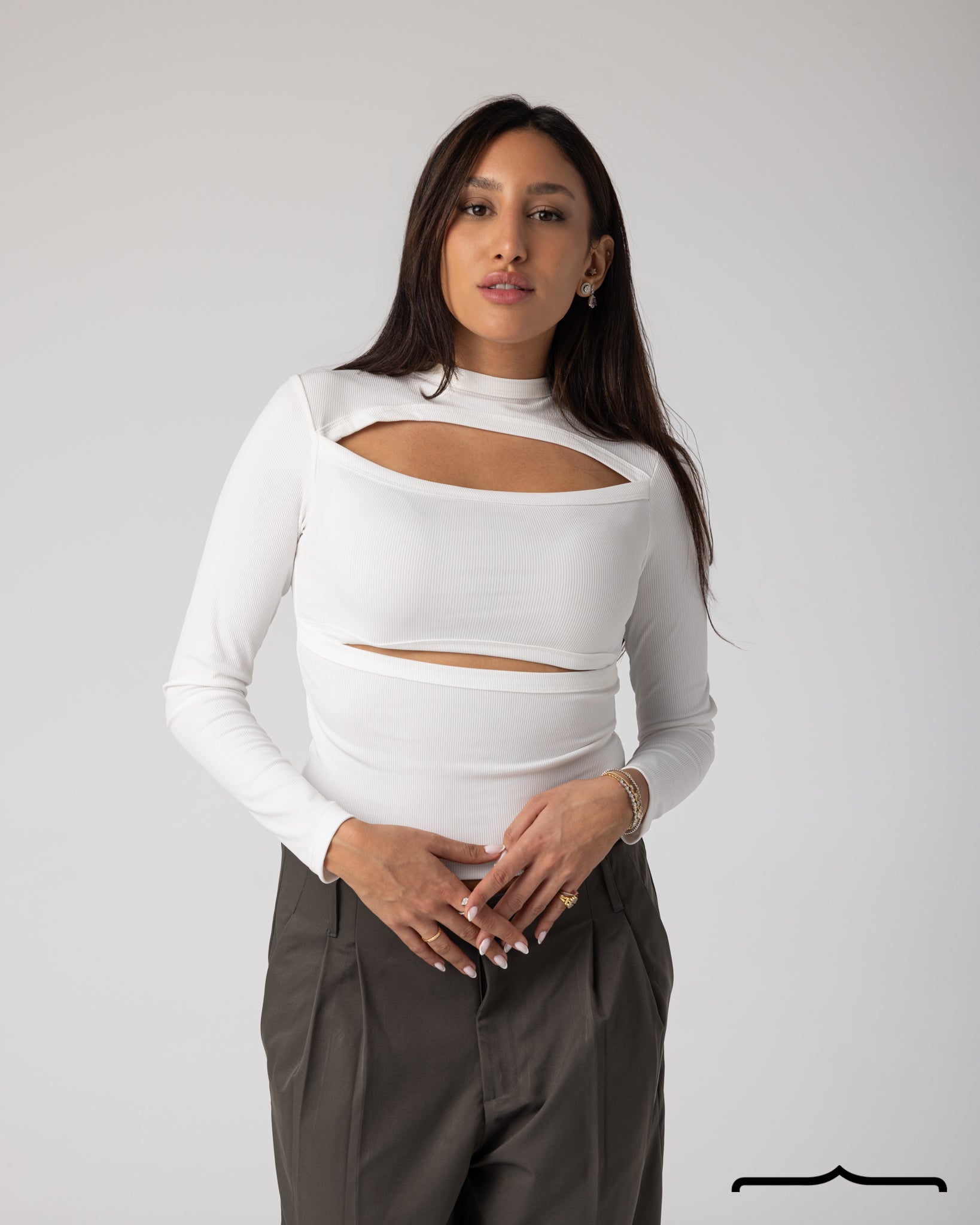 Bold lines meet fearless cut-outs. A fitted top that frames the body with attitude — unapologetic and far from basic.