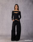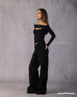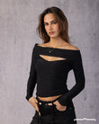 An off-shoulder cut-out top designed to sculpt the body and highlight the neckline. Clean, confident, and effortlessly striking.