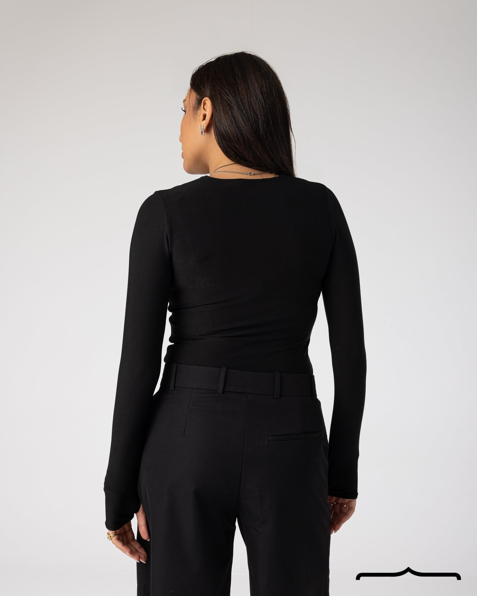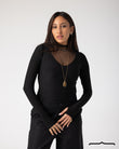 A sheer, sculpted mesh top designed with bold finger cut-out sleeves. Streamlined, edgy, and made to elevate any layering moment.