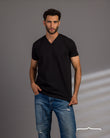 Curved Back V-Neck T- Shirt in Black
