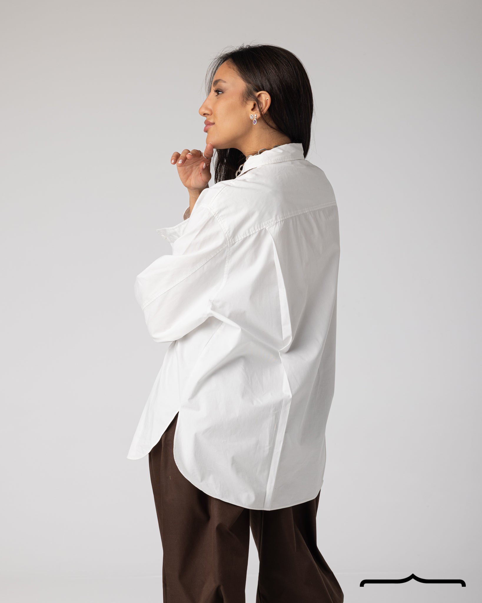 Crisp, effortless, and confidently oversized. The classic white shirt reimagined with modern volume and a clean, understated attitude.
