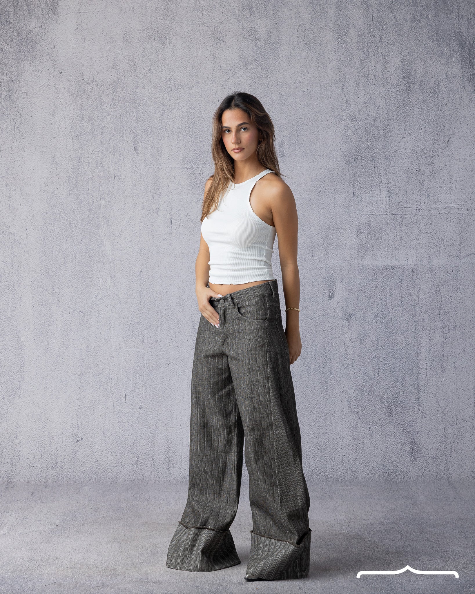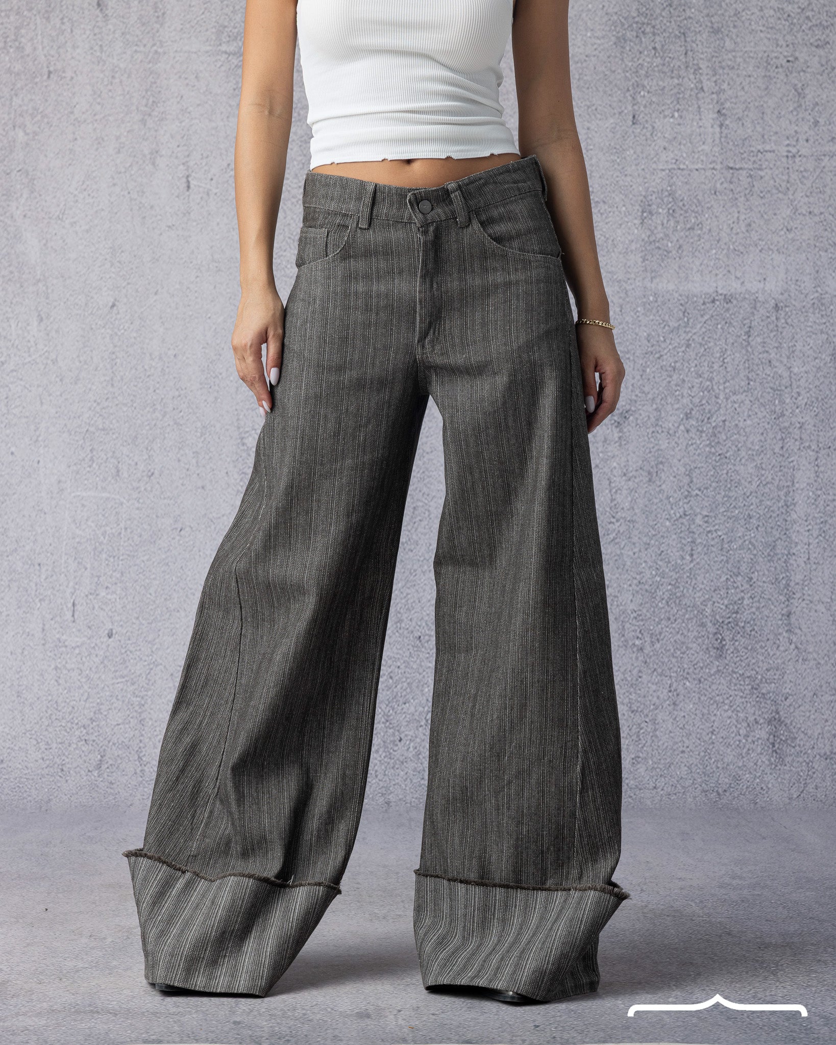 These wide-leg jeans feature a relaxed fit with bold cuffed hems for a statement silhouette. The low waist adds a laid-back edge—perfect for pairing with crops, basics, or layered looks.