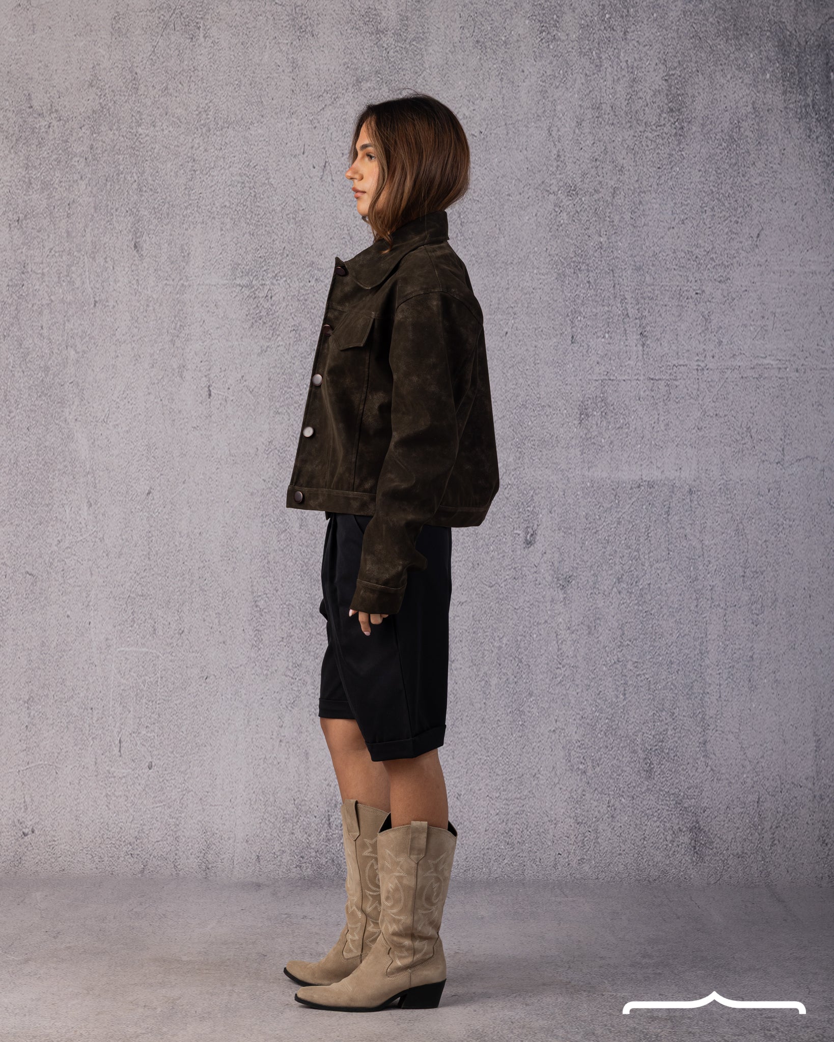 A suede jacket with a classic length and front pockets for effortless style and function. Soft texture meets a confident, timeless design — easy to wear and easy to style.