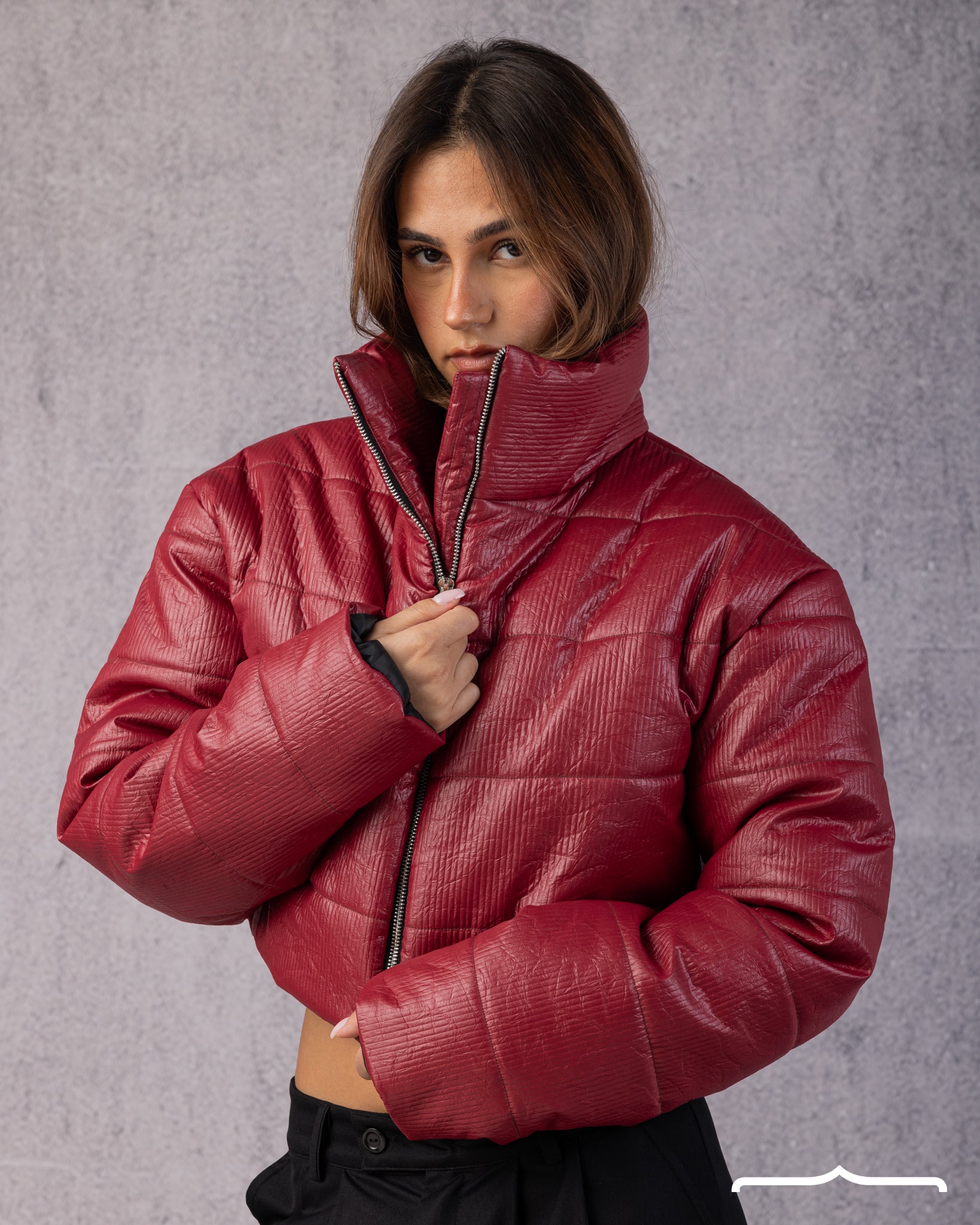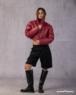 A statement red bomber jacket designed to stand out. Clean lines and a bold finish elevate any look. Effortless, confident, and made for maximum impact.