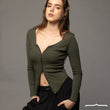 This white double-sided zipper top features stretchy material that flatters your body, delivering a chic and edgy look for any occasion.